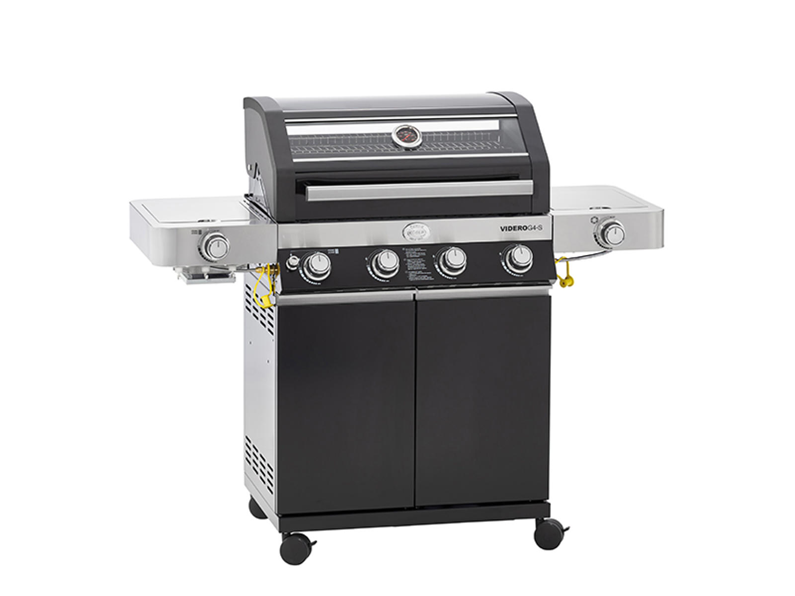 The Rösle Videro G4-S Vario+ is a powerful gas grill with an impressive output of 20,500 watts, combining high performance with thoughtful functionality. Featuring four stainless steel main burners, a Primezone, and a side burner, you have both power and flexibility to prepare everything from juicy steaks to delicate vegetables. This black gas grill is built with durable materials and offers a large grilling area of 70 × 45 cm.