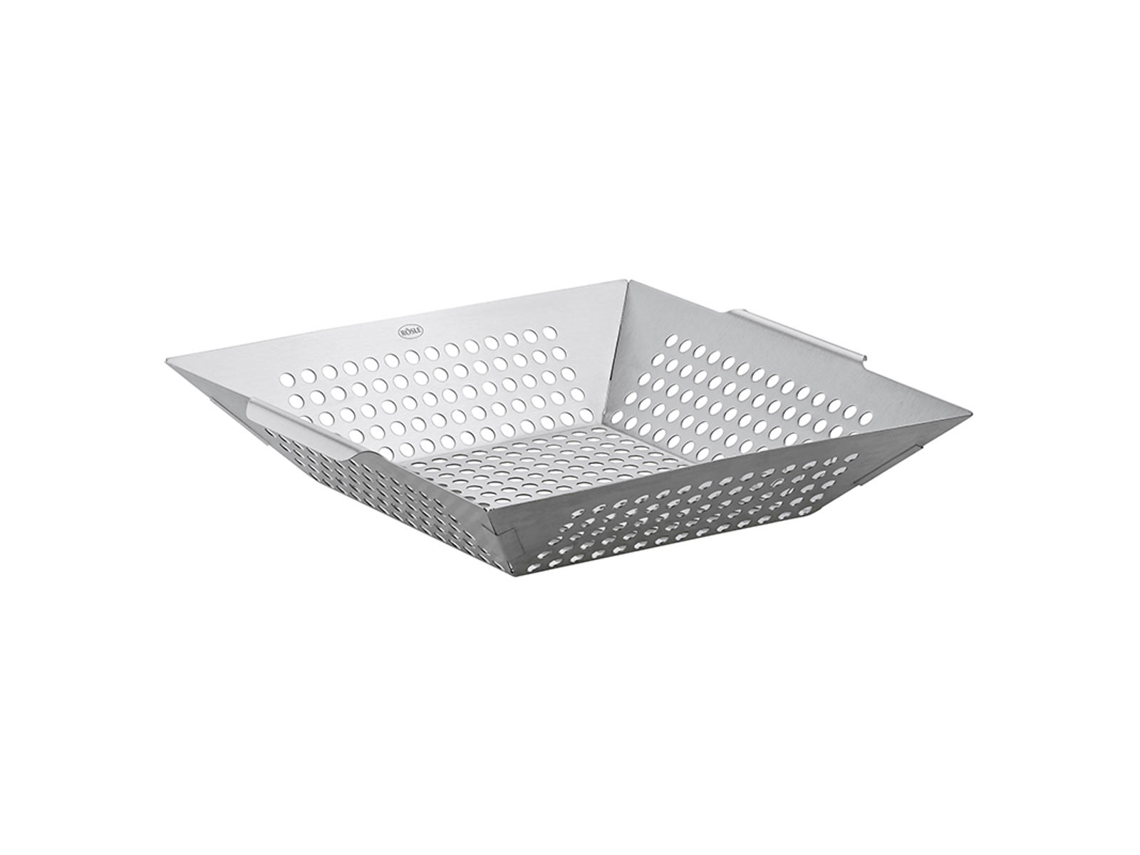 This grill tray from Rösle is made of high-quality 18/10 stainless steel with perforations that ensure optimal heat transfer directly to your food. Measuring 33.5 x 30 x 6.5 cm and featuring two sturdy handles, it is designed for safe handling and versatile use on the grill or in the oven.