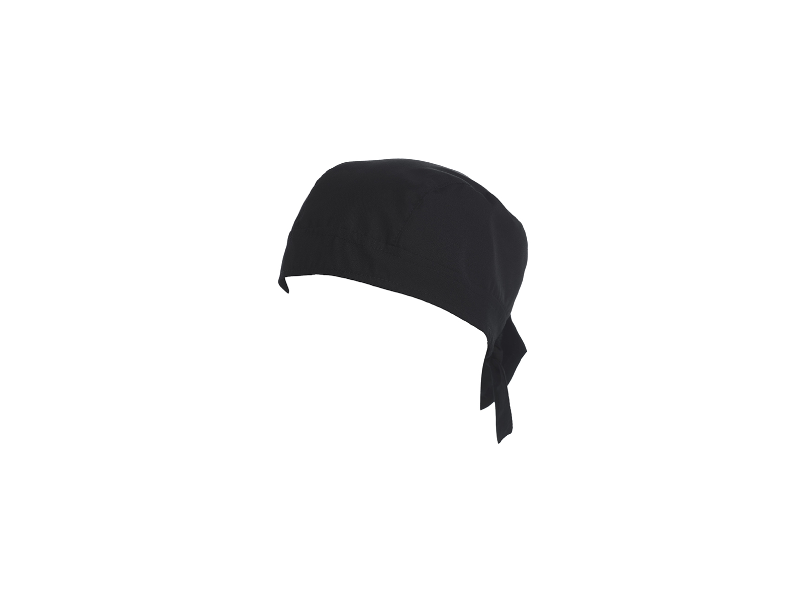 The Kentaur Bandana in black is a functional headpiece designed for professional work environments. Made from a durable blend of 65% polyester and 35% cotton, this bandana offers both comfort and practical use in a one-size-fits-most design.