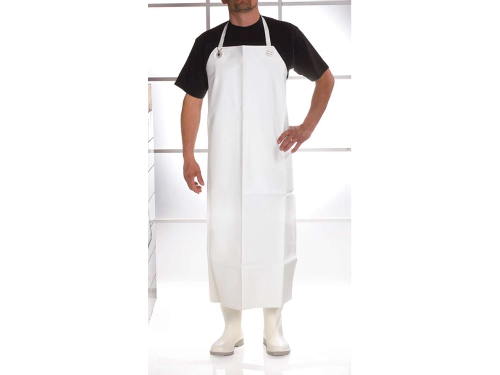 This white PU apron, measuring 120x90 cm, provides effective protection against moisture, grease, and dirt in busy kitchens. Made from durable polyurethane (PU), the apron ensures longevity and easy cleaning in demanding work environments. It's ideal for use in professional kitchens, butcher shops, fish processing, and other settings where hygiene and protection are essential.