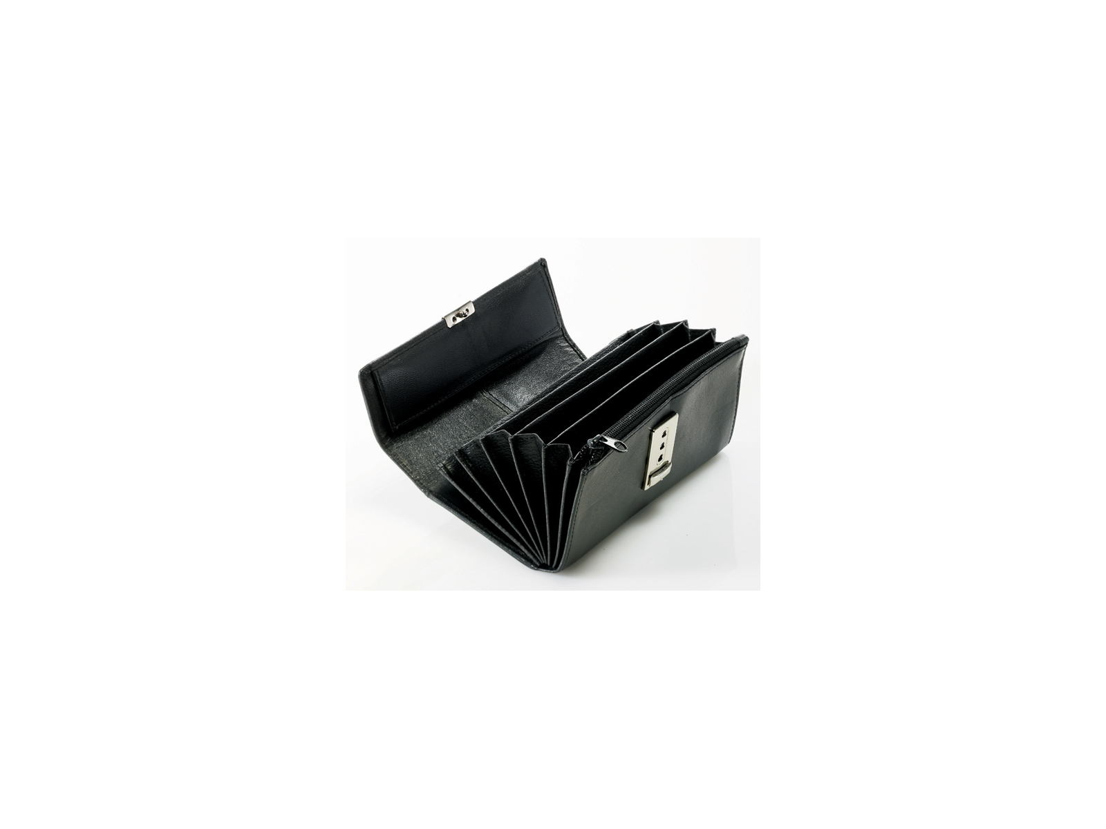 Wallet leather 5 compartments black with lock