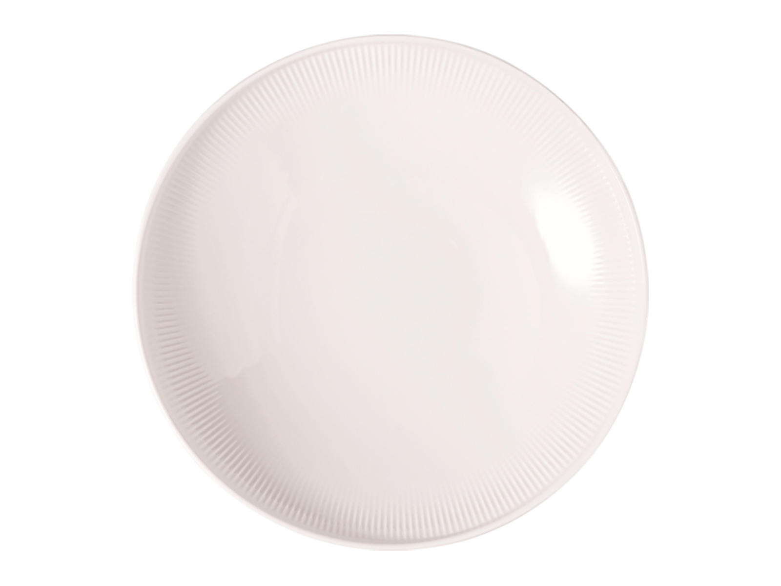 This deep plate from the Villeroy & Boch Afina collection is crafted from premium porcelain featuring an elegant relief pattern. With a diameter of 290 mm and a capacity of 870 ml, it offers ample space for soups, pasta dishes, and salads. The unique construction with refined details creates a captivating shadow effect, giving the plate a floating appearance.