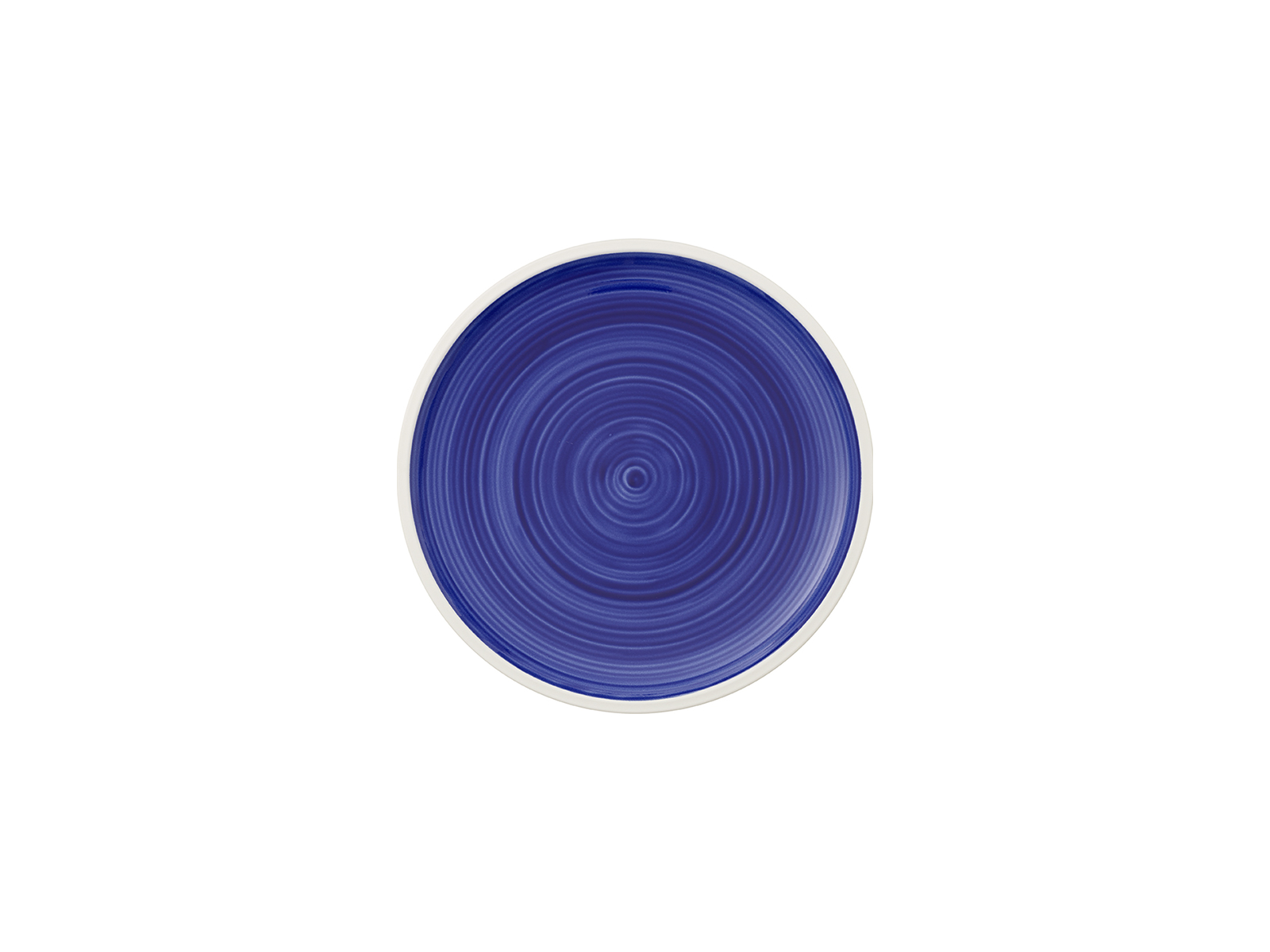 This flat plate from Villeroy & Boch's Artesano Ocean collection showcases an intense Atlantic blue color inspired by the depths of the sea. The plate features hand-painted, textured glazes that give each piece a unique, artisanal expression with decorative concentric circles.