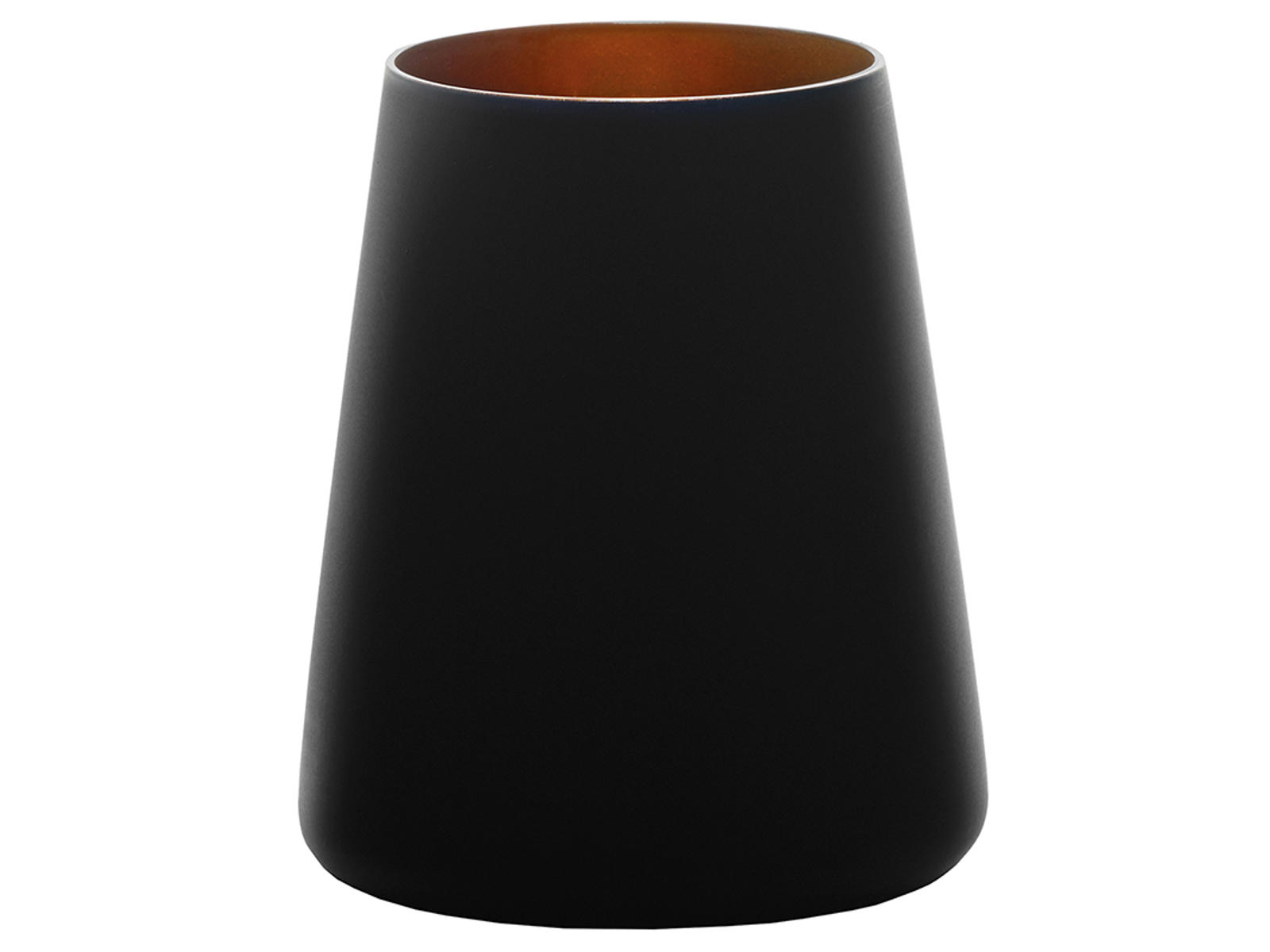 This Power glass from Stölzle holds 38 cl and weighs 150 grams. The black/bronze color coating on the outside is made from organic material that complements the clear glass, creating an elegant appearance. The trapezoidal design of the glass makes it both functional and visually appealing, regardless of the type of drink you serve.