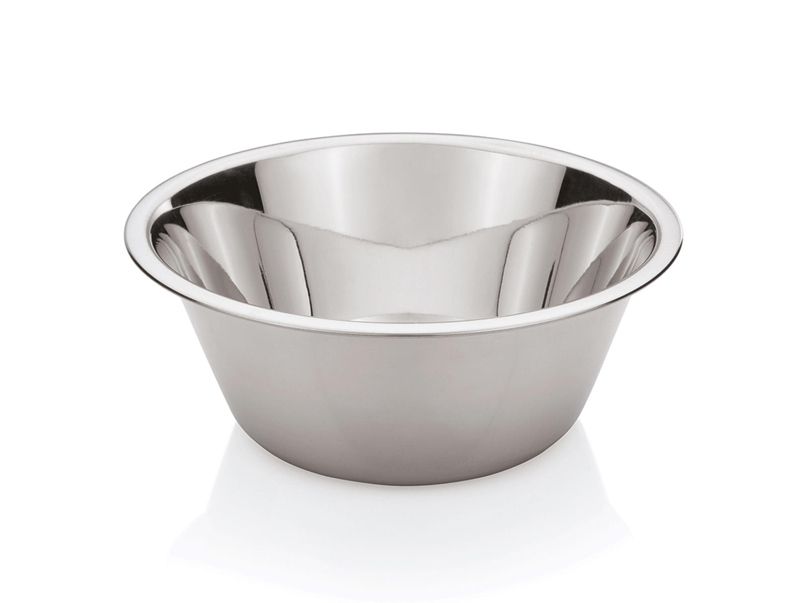 This cone-shaped stainless steel bowl, with a capacity of 0.4 liters and a diameter of 12 cm, combines functionality with durability. The bowl's unique conical shape with a gently curved edge provides you with optimal control during cooking, while the stainless steel ensures longevity and resilience against daily use.