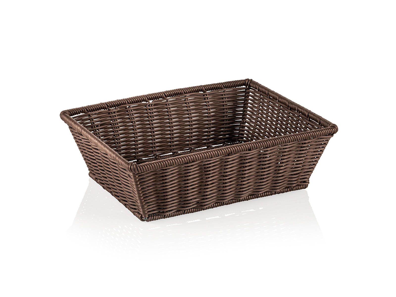 The brown woven design gives the basket a warm and inviting appearance that fits perfectly in both modern and classic serving environments. The basket is designed to fit standard GN systems, making it compatible with existing kitchen equipment. Its robust construction ensures that the basket can withstand daily use in busy serving environments, while its natural look adds a touch of warmth and authenticity to your buffet.