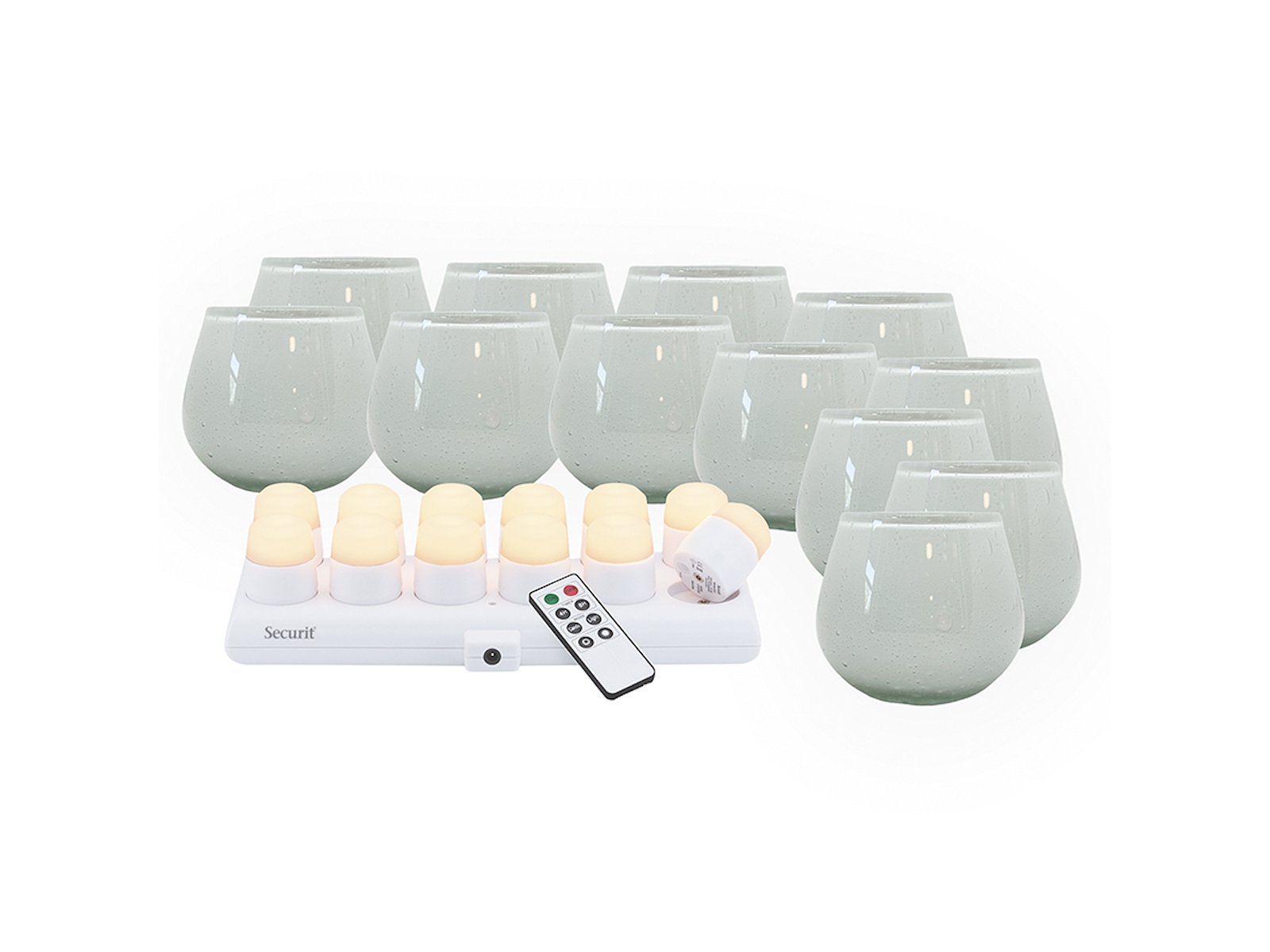 The Securit Luna candle holder set combines handcrafted glass art with modern LED technology. The 12 white holders are made from hand-blown, recycled glass in the EU, giving each holder its own unique pattern. With the included LED tealight candles, you can easily create a warm and inviting atmosphere without the worry of melted wax, smoke, or soot.