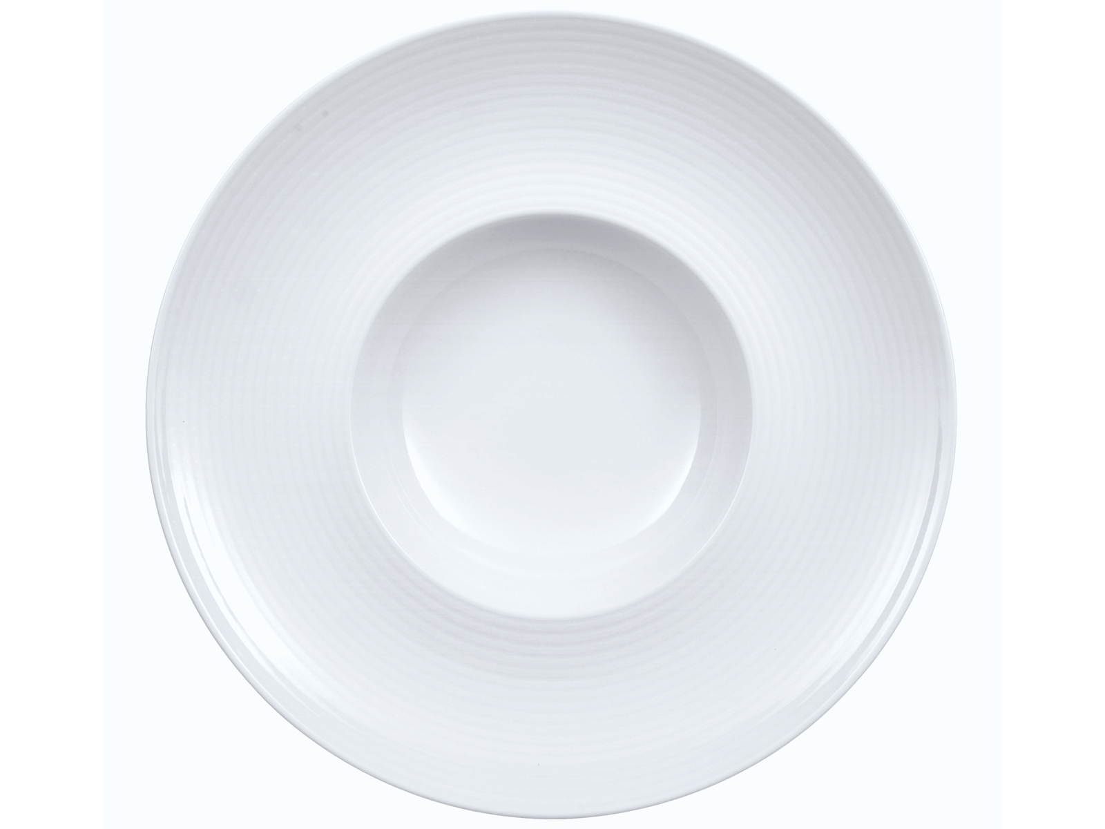 Perimeter deep plate in porcelain with elegant rim design