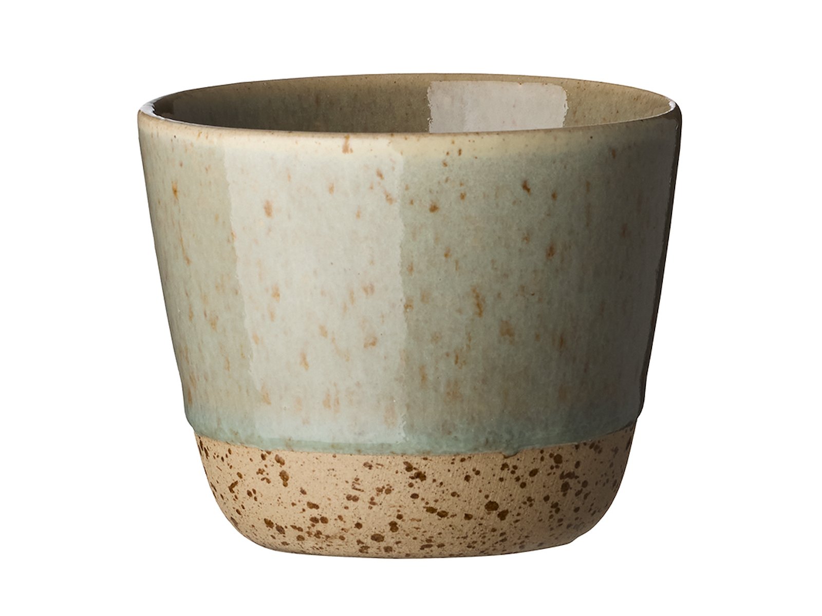This RAW Colour mug without a handle, holding 20 cl, is crafted from handmade stoneware with a beautiful green translucent glaze. It combines functional design with Nordic simplicity, where the minimalist expression without a handle gives the mug a modern and natural appearance. With its practical size, it is perfect for a cup of coffee or tea in your daily routine.