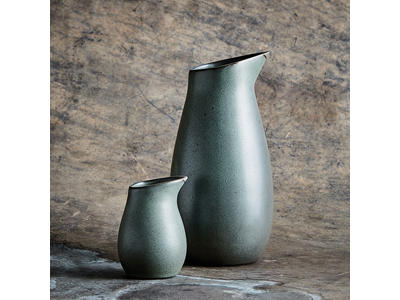 The RAW Water Carafe in Northern Green, with a capacity of 1.2 liters, combines functionality and Nordic design into one beautiful product. Its deep green color, adorned with elegant, sparkling gray particles, creates a sophisticated contrast to your table setting. Made from durable porcelain, it is both dishwasher and microwave safe.