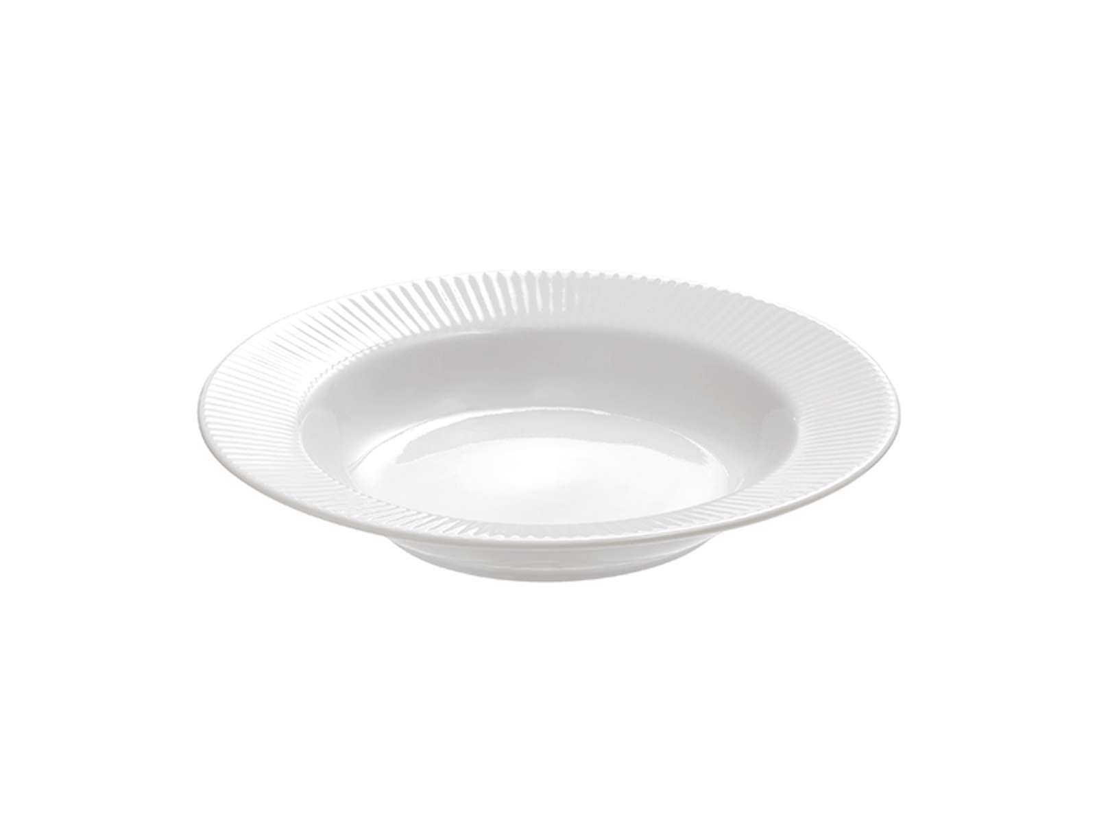 The deep plate, measuring 21 cm in diameter, provides ample space for meals without taking up unnecessary room on the table. The ribbed decorative details not only create a visually interesting look but also offer a good grip on the plate. Made from premium quality porcelain, it ensures durability for everyday use while the elegant white color complements any kitchen and table setting.