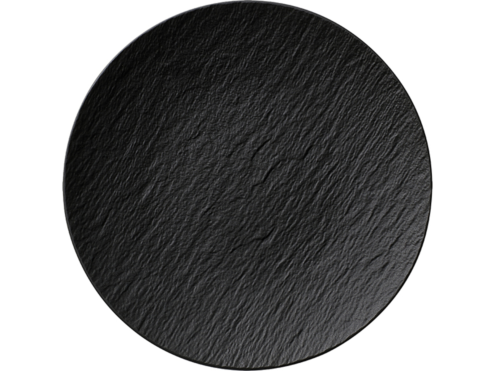 The Rock series is characterized by its linear shapes and exceptional material finishes, creating a unique tactile experience at the table. The black color is not only timeless but also practical for everyday use, as it conceals minor stains and wear marks. The plate's robust construction ensures longevity even with daily use in busy environments.