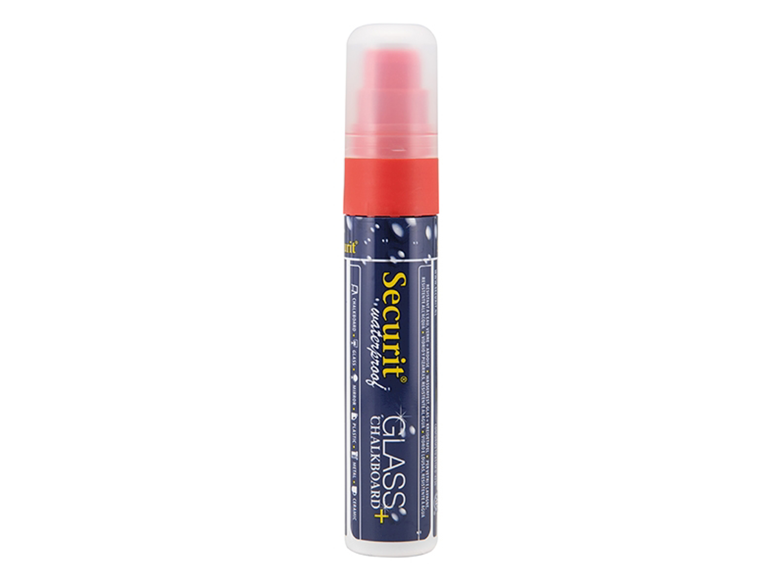 This waterproof yellow marker from Securit, with a line thickness of 7-15 mm, is perfect for clear and durable marking. Weighing only 70 grams, the marker fits comfortably in your hand, allowing you to write bold, visible texts on various surfaces that resist both water and regular wear.