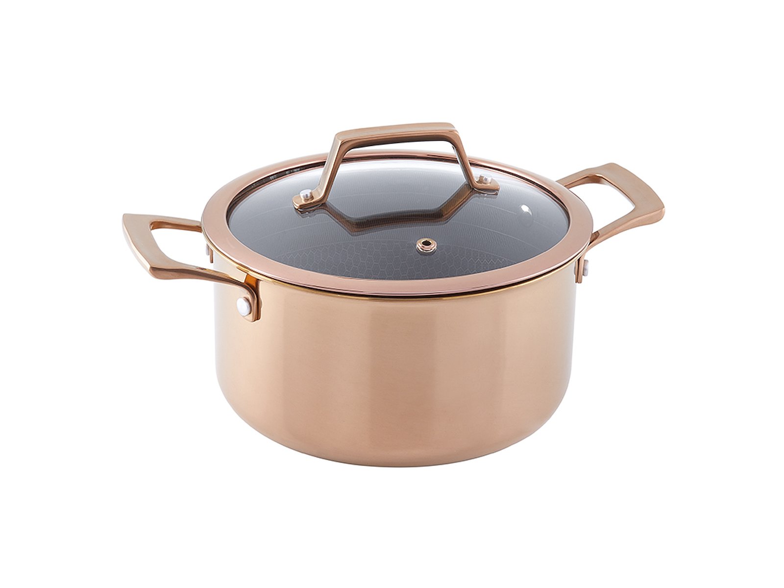 The Håws Santo pot, with a 3.4-liter capacity and rose gold finish, combines functionality with an exclusive look. It is constructed using a 3-layer multi-ply technology that ensures even heat distribution and features a durable hybrid non-stick coating that makes cooking easier. The pot is compatible with all heat sources and can be used in the oven.