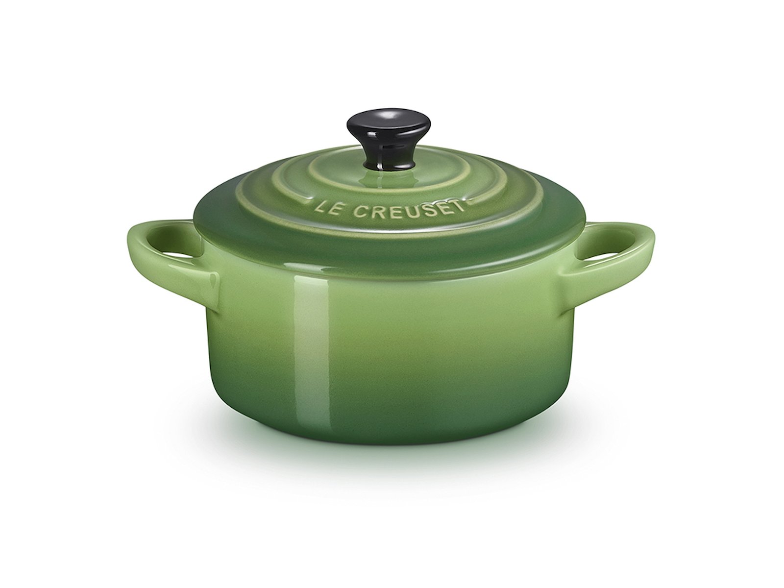 The Le Creuset mini cocotte, crafted from stoneware with a diameter of 10 cm and a volume of 0.25 liters, combines functionality with timeless design. Made from glazed stoneware in the refreshing Bamboo color, it is not only decorative but also practical with its ability to maintain an even temperature. The mini cocotte is designed to complement Le Creuset's classic cast iron pots featuring the iconic three rings.