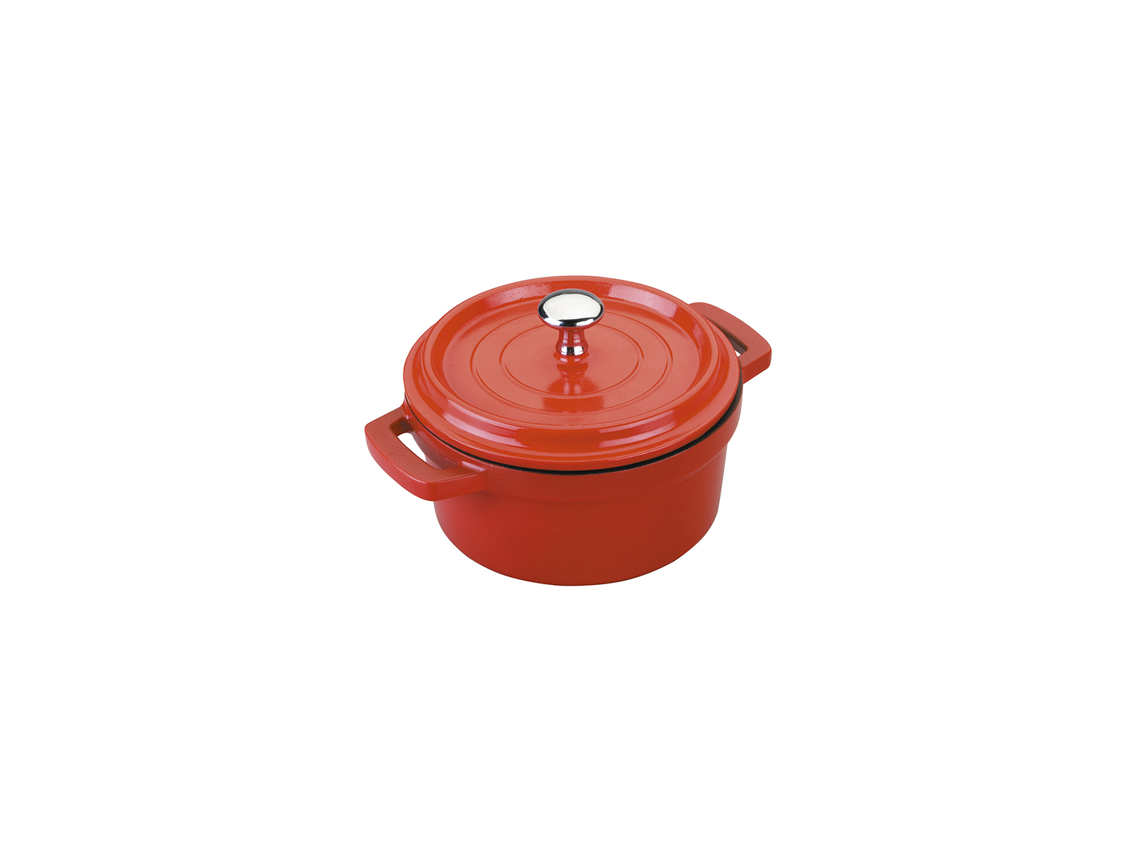 The mini pot is cast in one piece, offering an exceptionally durable design. The two handles remain cool during cooking, preventing burns to your fingers. Under the lid, you’ll find small dots that allow condensation to drip back into the food, preserving flavor and moisture through effective circulation of heat and aromas. The red color also adds a decorative touch to your kitchen.
