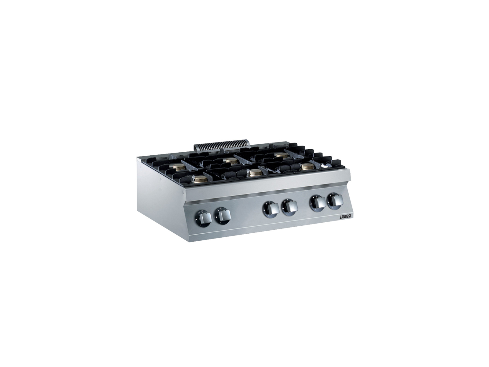 This Zanussi Coup de feu cooktop combines durable cast iron with efficient gas heating of up to 7 kW. The robust 800x700x250 mm surface features a unique temperature gradient, providing different heat zones across the same area, allowing for flexible cooking without the need to switch between multiple heat sources.