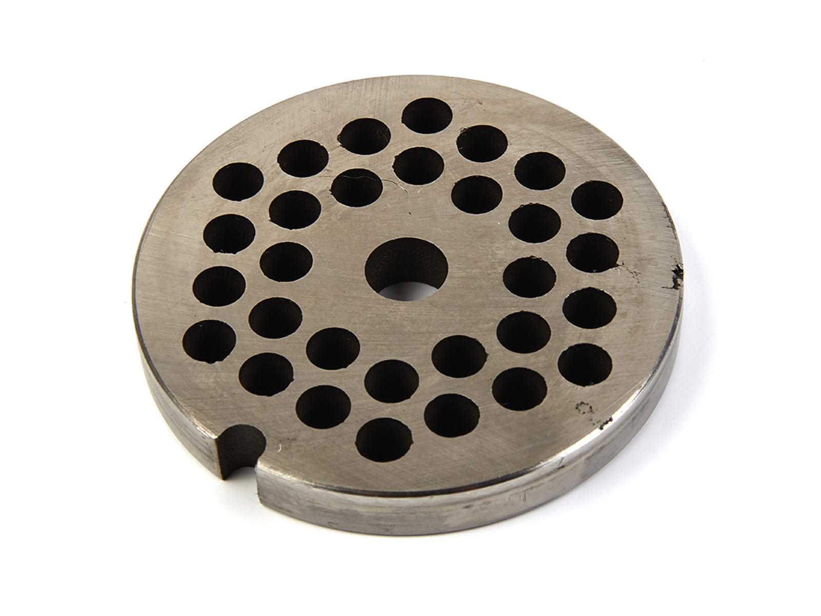 Wash the perforated plate thoroughly in warm soapy water immediately after use. Avoid letting meat residues dry on it. Dry it thoroughly after cleaning to prevent rust formation.