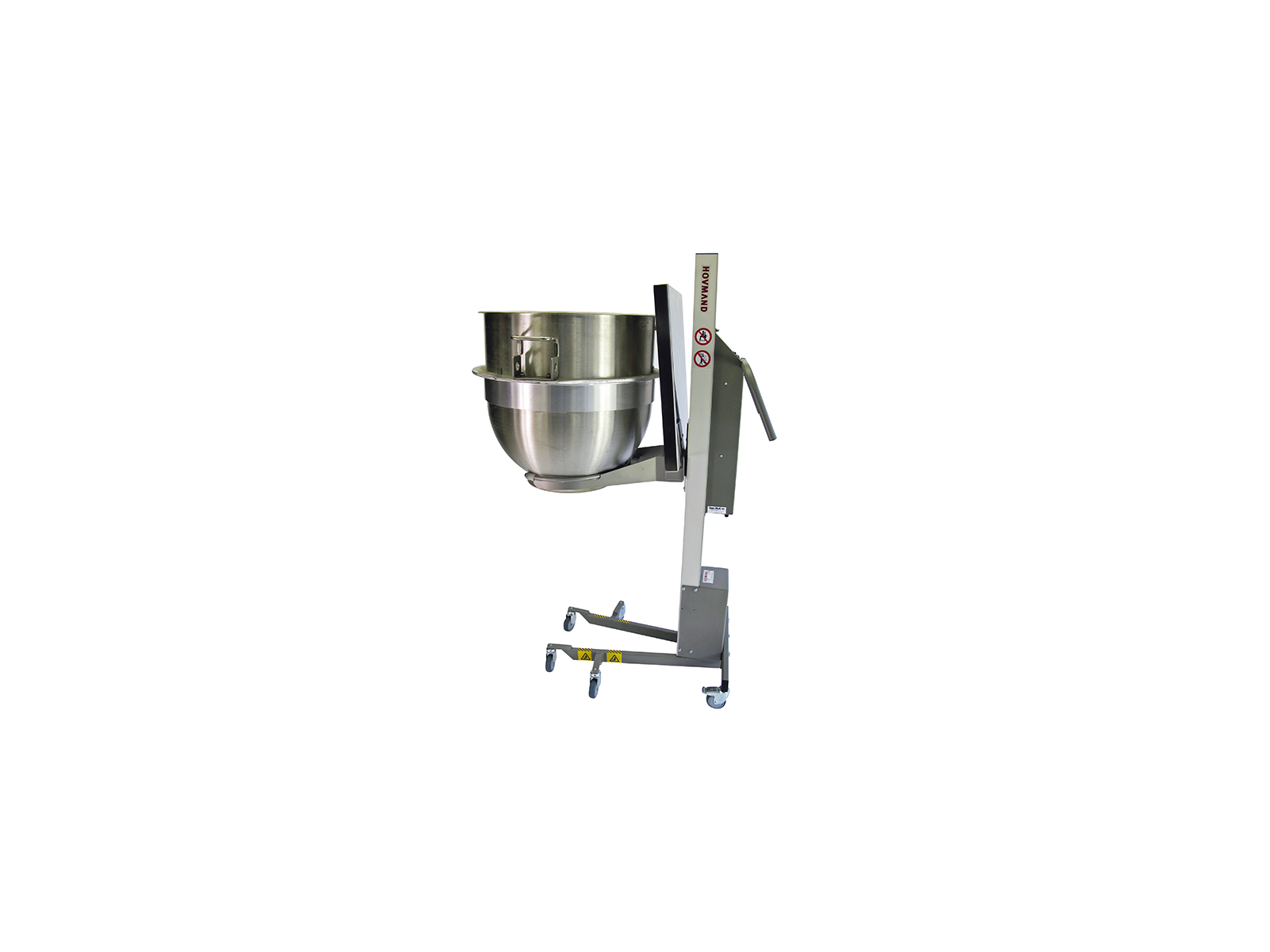 This model is specifically designed for Bjørn mixing machines with bowls ranging from 30 to 60 liters, but please contact us for information about lift carts for other machines.