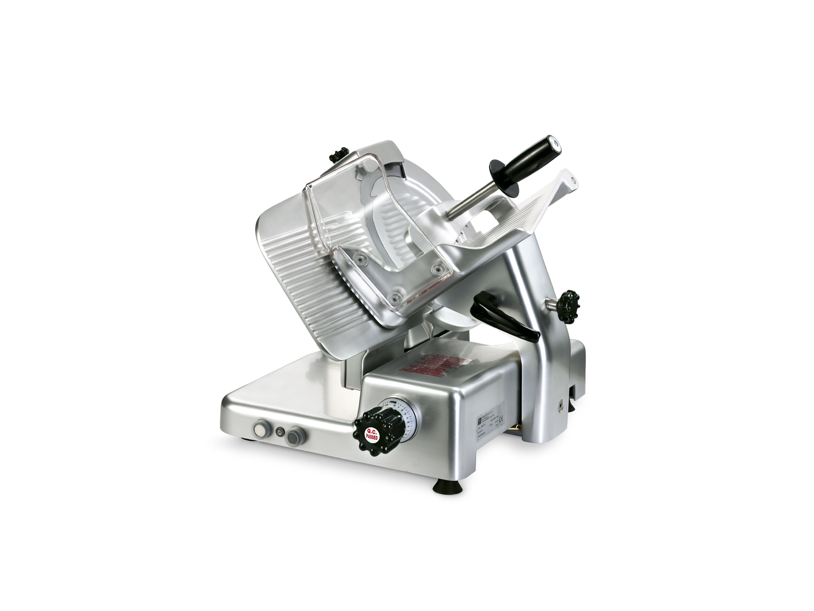 The low loading height of the Kolossal 330 IK minimizes strain on the user during extended use. The smooth and gliding movement of the carriage makes it easy to handle even heavy foods. The gear motor delivers a constant blade speed of 200 revolutions per minute, ensuring a clean cut every time. With an impressive cutting capacity of Ø240 mm or 290 x 210 mm, this machine can handle large pieces of meat and deli meats without losing precision.