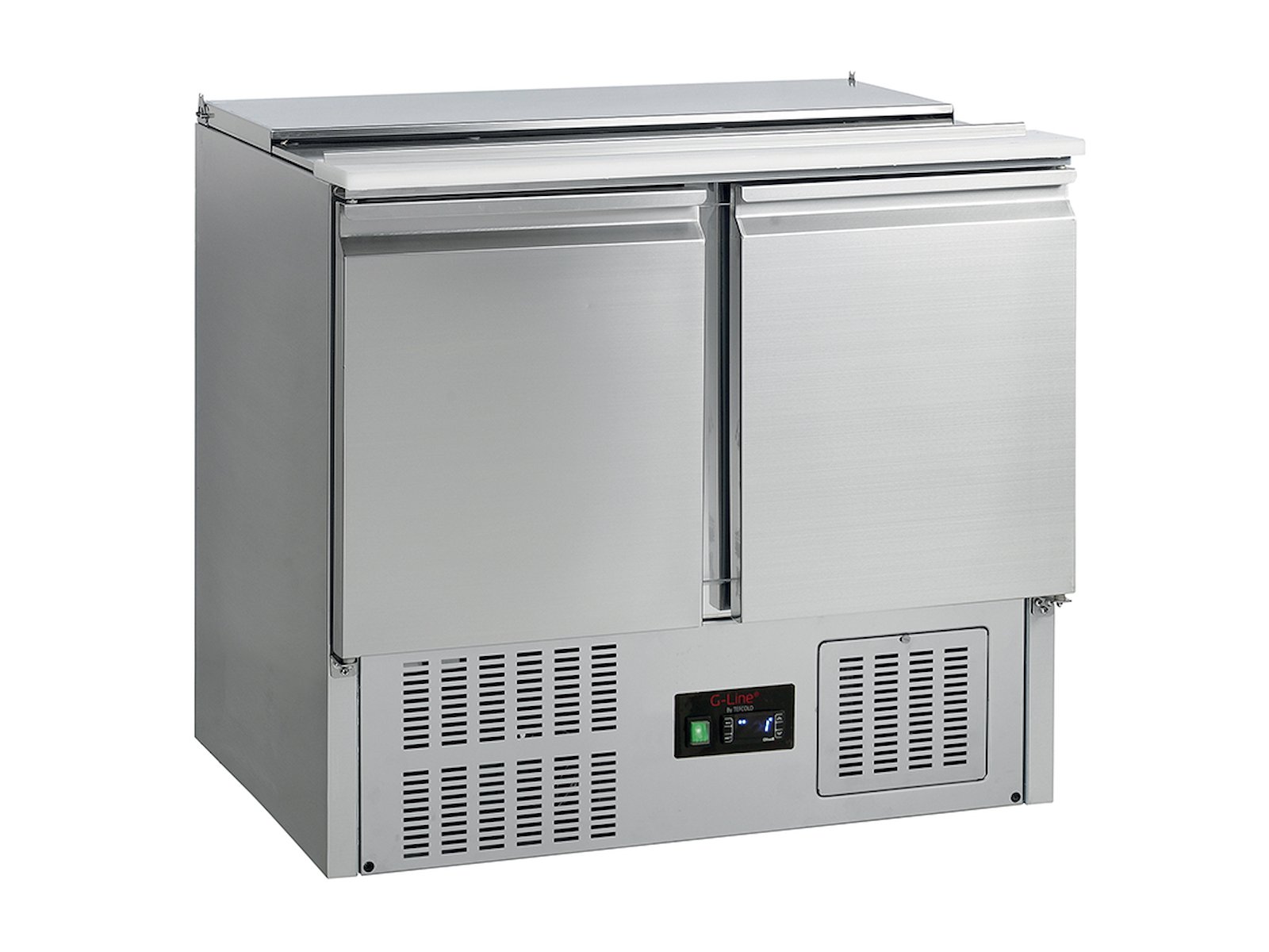 The open top of the SA1045 is specifically designed for direct use with GN1/1 containers, providing easy access to vegetables, cold cuts, and other fresh produce. Despite its compact dimensions of 1045x700x877mm, it boasts an impressive 240 liters of storage behind two sturdy doors. The digital temperature control ensures precise adjustments between +2 and +10°C, while fan-assisted cooling guarantees consistent temperatures throughout the unit.