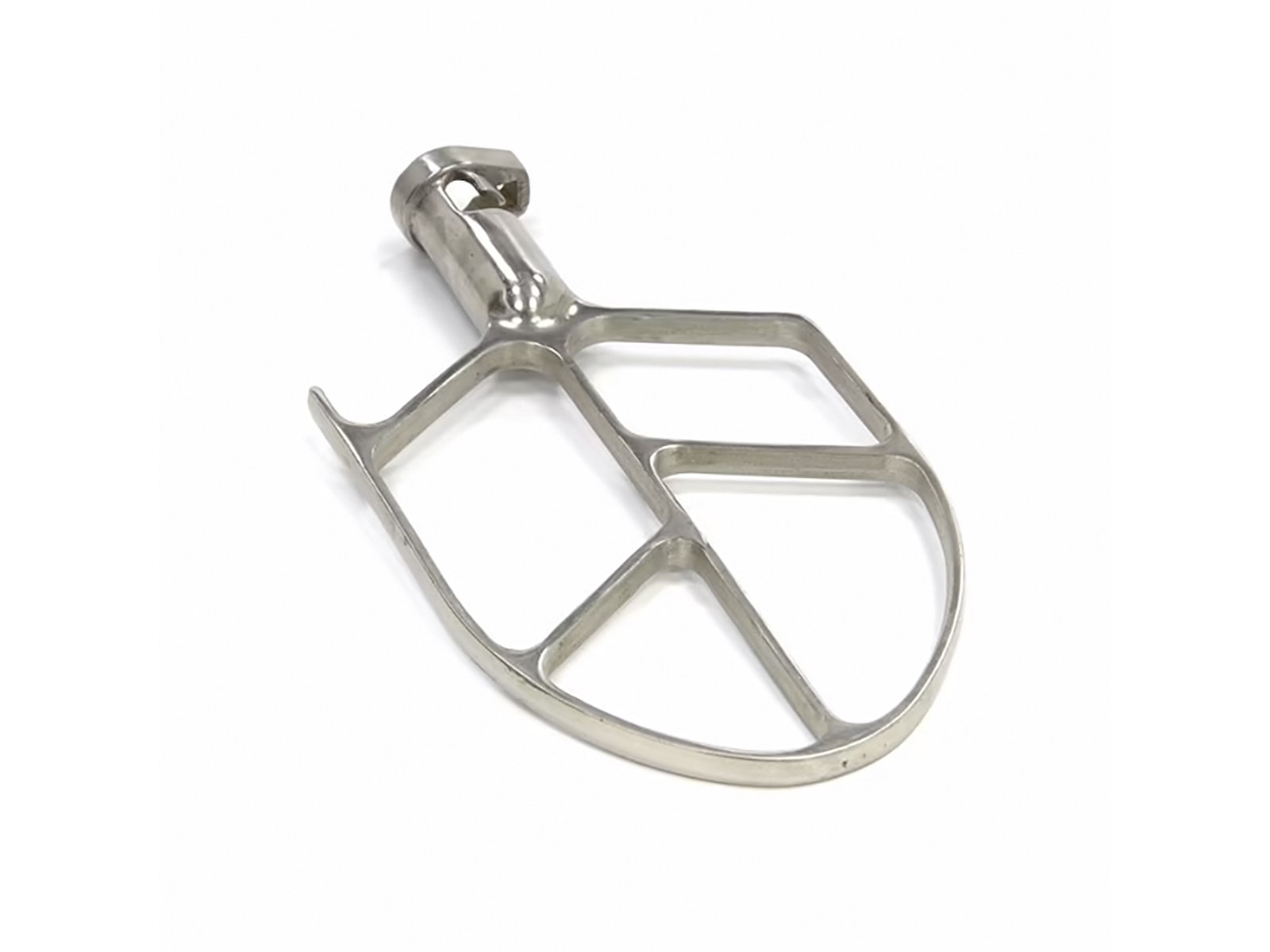 This Maxima spatula is compatible with MPM 10L mixers manufactured after 2017. It is made from food-grade stainless steel that is both durable and hygienic. The design follows the inner contour of the machine to ensure that all ingredients are evenly processed during the mixing process.
