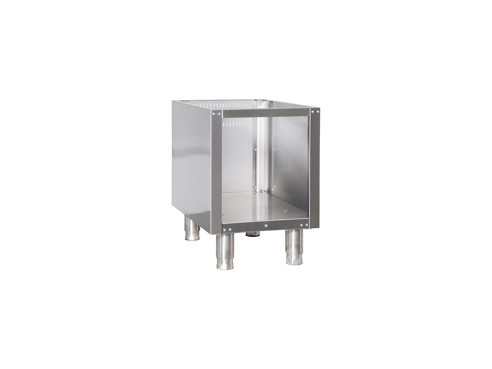 This neutral base cabinet without a door, made of stainless steel, provides direct access to your kitchen equipment with its spacious dimensions of 400x700x570 mm. The open design is tailored for professional kitchens, where quick access to frequently used tools is crucial for an efficient workflow.