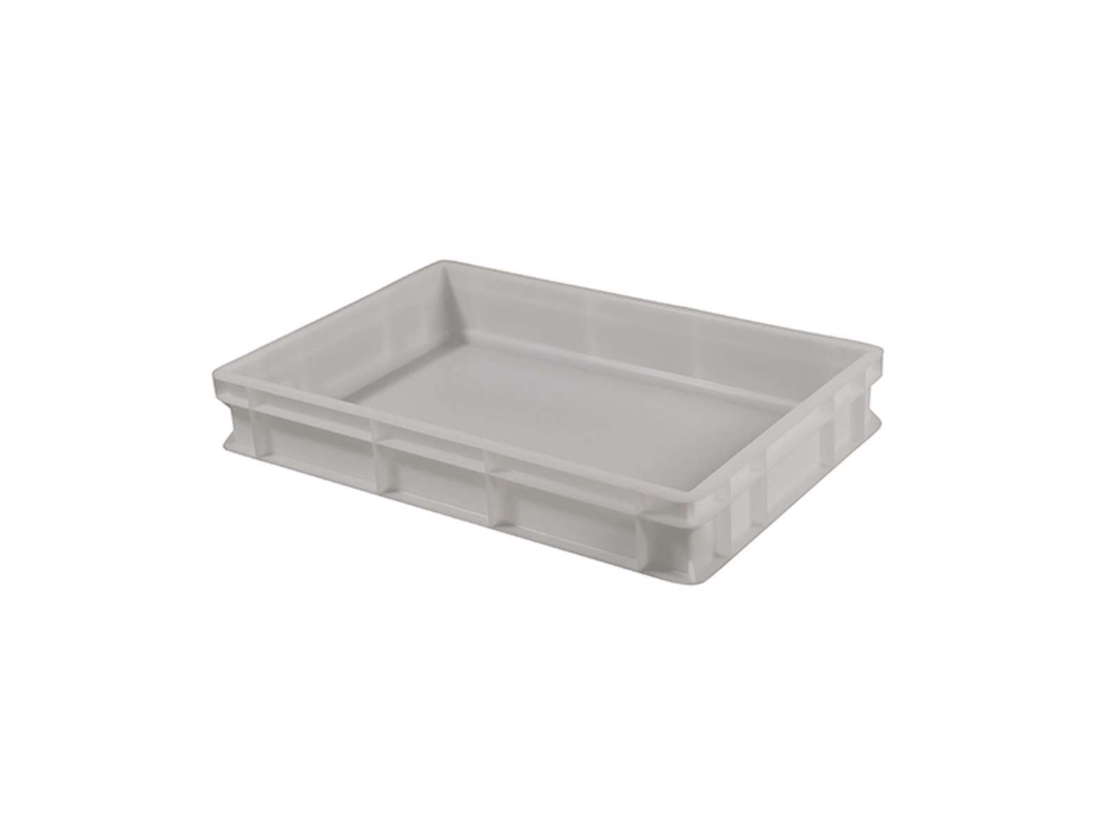 The dough tray features precise shaping through injection molding, ensuring consistent quality and accurate dimensions. The white color makes it easy to identify dirt, thereby maintaining high hygiene standards. The polypropylene material is food-approved and contains no harmful substances, making the tray safe for direct food contact. It can be used without a lid, allowing easy access to the contents during production processes.