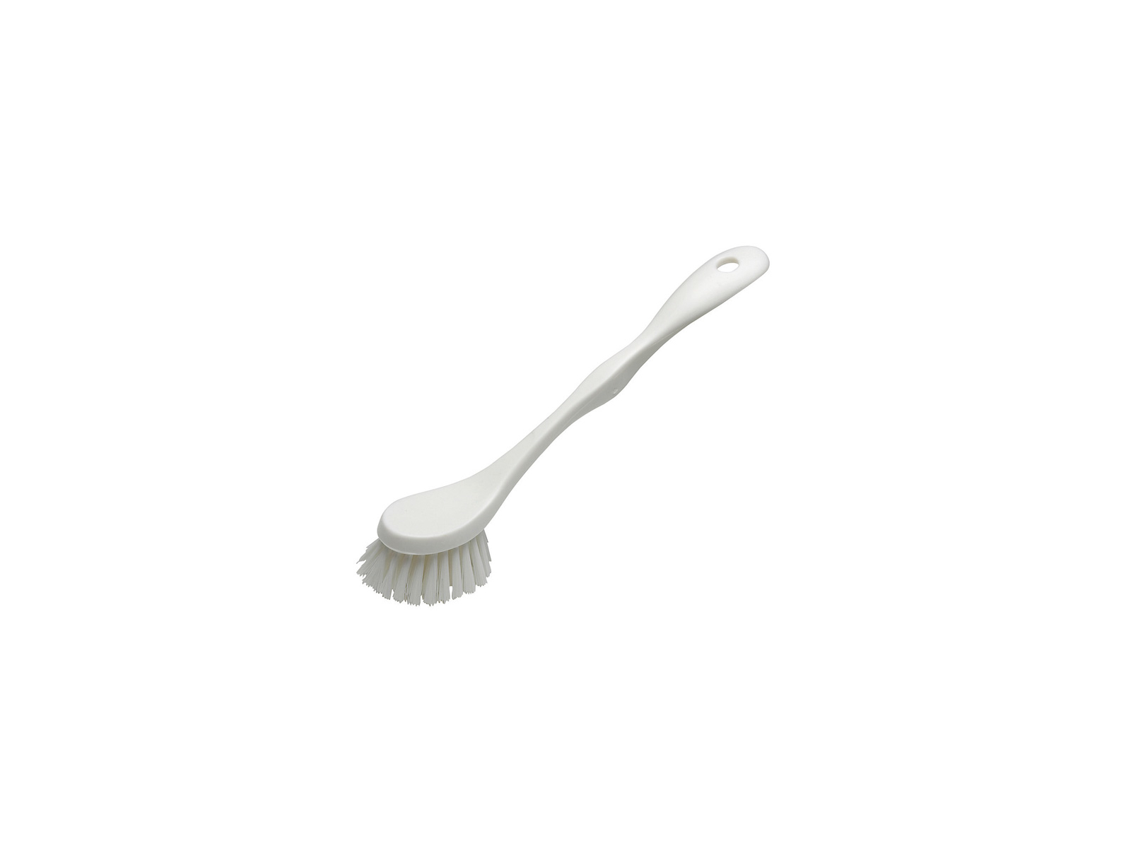 Vikan's white dish brush combines functionality with durability in a thoughtful design. Measuring 240 mm in length and featuring stiff nylon bristles, this brush provides optimal cleaning performance for daily dishwashing. Made from polypropylene and nylon, it has an ergonomic grip that feels comfortable in your hand.