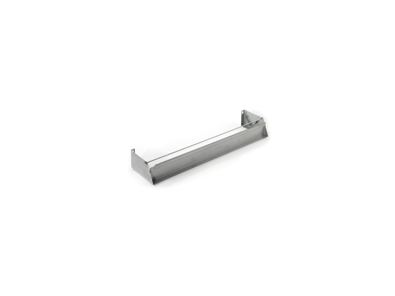 The robust construction of coated steel ensures the dispenser's longevity even in demanding industrial kitchens. The sharp rotary cutter slices through food film without tearing or folding, making each cut perfect. The dispenser's stable design keeps it securely in place on the work surface during use, allowing you to cut film with one hand.
