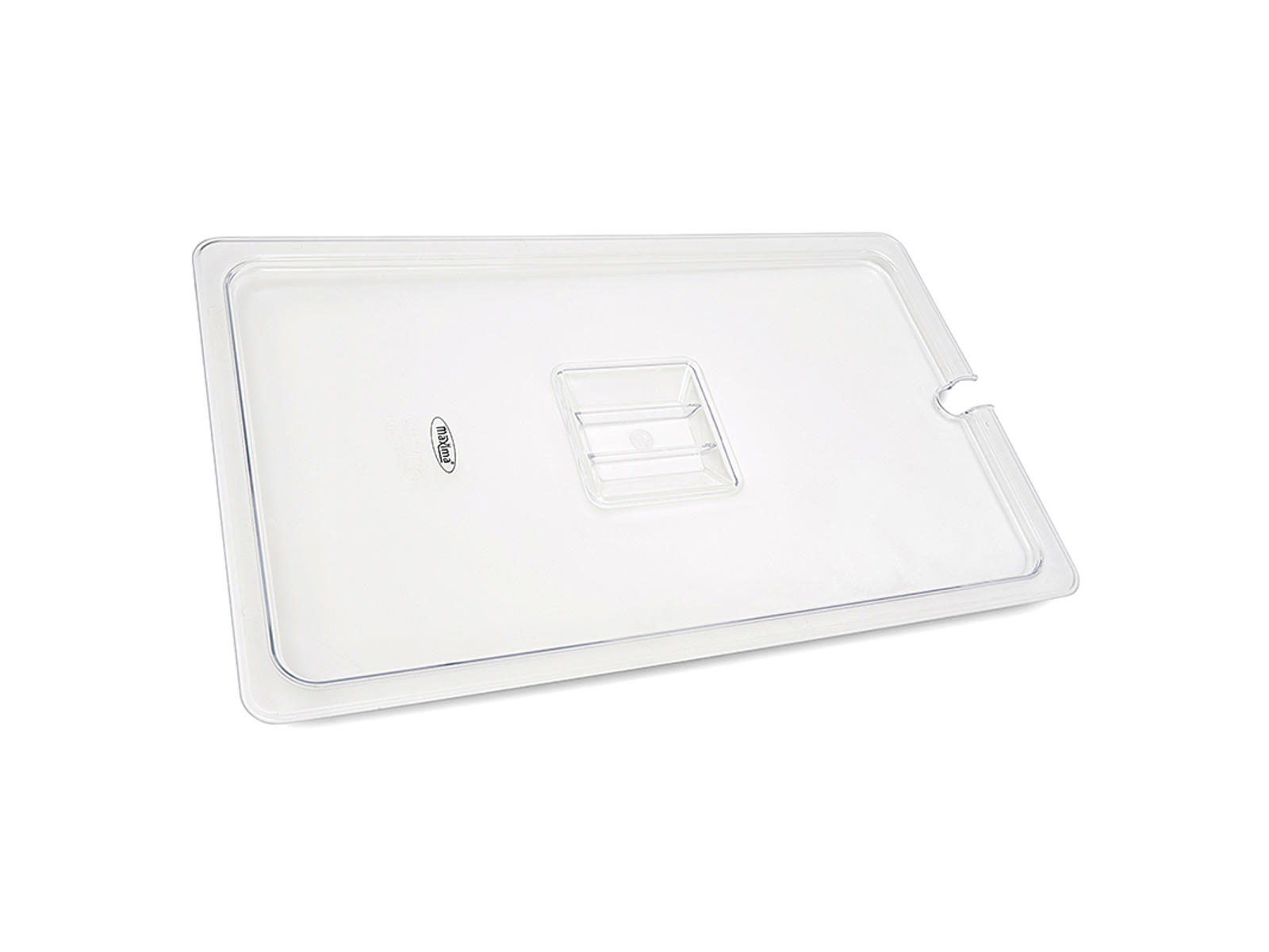 This Maxima food pan cover, made from durable polycarbonate, is specifically designed for 1/2 GN containers. With its transparent construction and practical cut-out for serving utensils, the cover combines functionality and durability in a professional food storage solution.