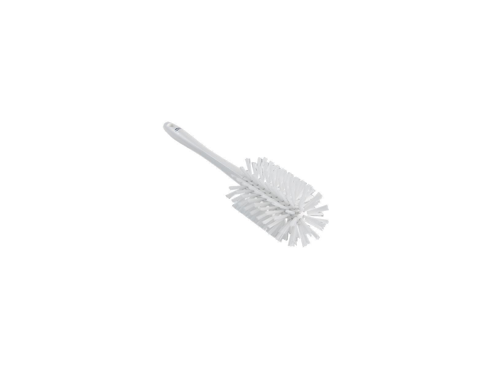 The brush is molded in one piece, eliminating joints where bacteria can hide. The construction of polyester, PP, and stainless steel makes the brush extremely durable, even with daily use. It withstands cleaning at temperatures up to 93°C in the dishwasher and can be autoclaved at 121°C for complete sterilization. With an operating temperature range from -20°C to +100°C (up to 80°C for food contact), the brush can be used in nearly all environments within the food industry.
