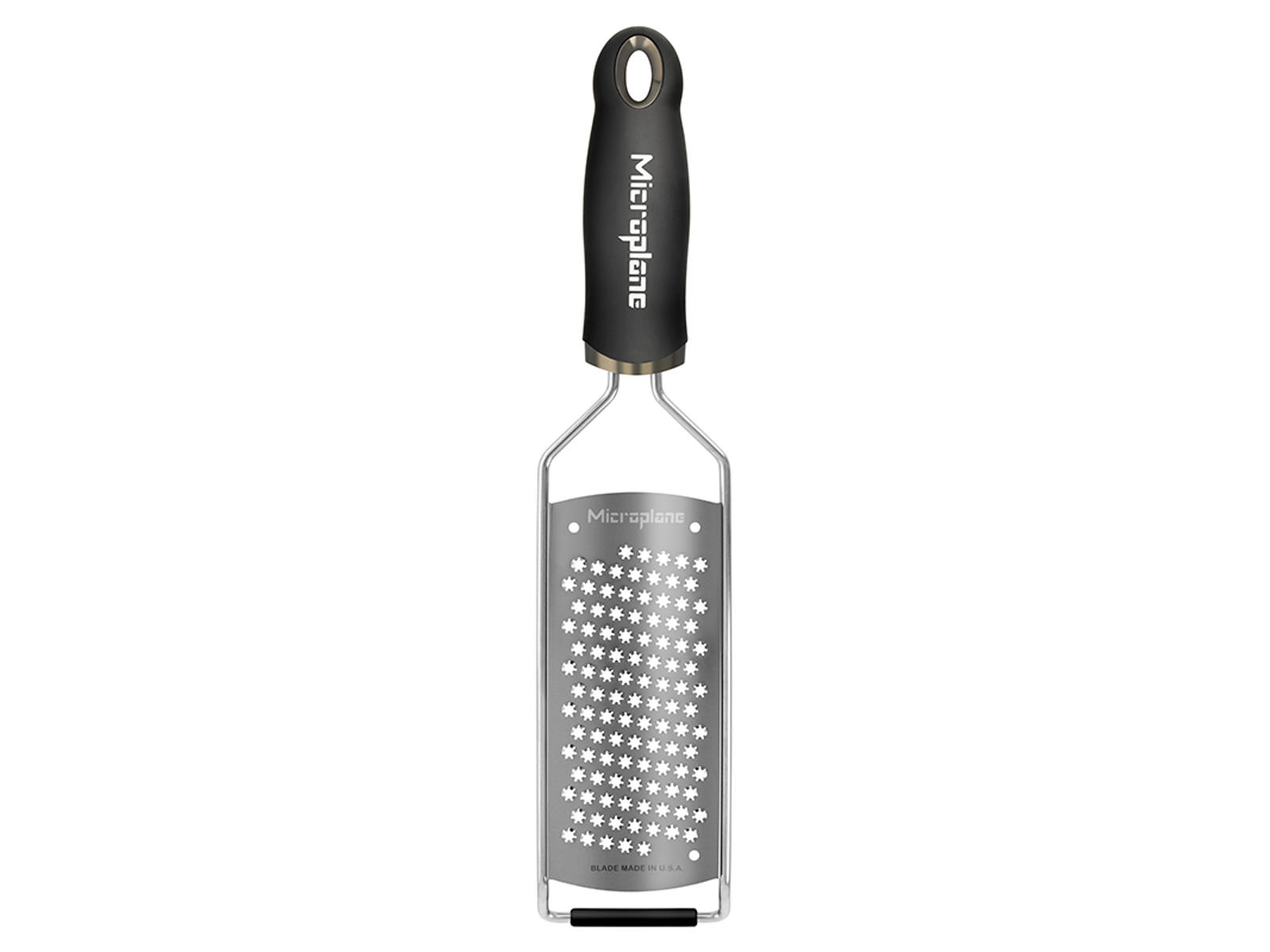 This star-shaped grater from the Microplane Gourmet series combines functionality and quality in one tool. With a wide grating surface of 13.3 x 6.7 cm and photo-etched stainless steel blades of surgical quality, this grater ensures precise and efficient grating. The ergonomic handle with a soft surface and non-slip base makes it comfortable and safe to use.