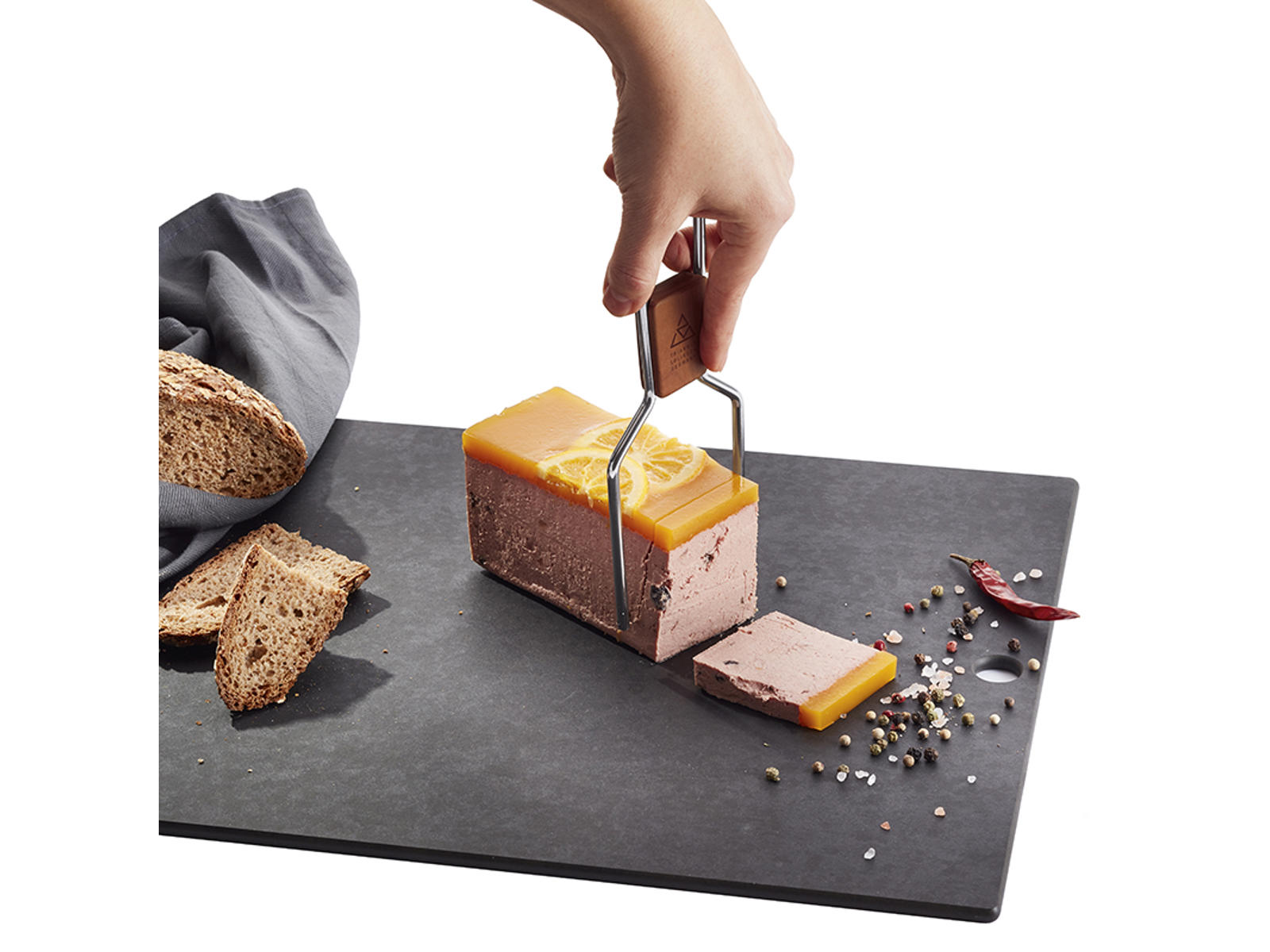 The Triangle Käselyra cheese cutter, featuring a 7 cm narrow wire, is specifically designed to slice soft and semi-soft cheeses with precision. The thin, taut wire glides effortlessly through the cheese without crushing or sticking, ensuring perfect slices every time. With a durable stainless steel frame, it combines functionality with longevity.