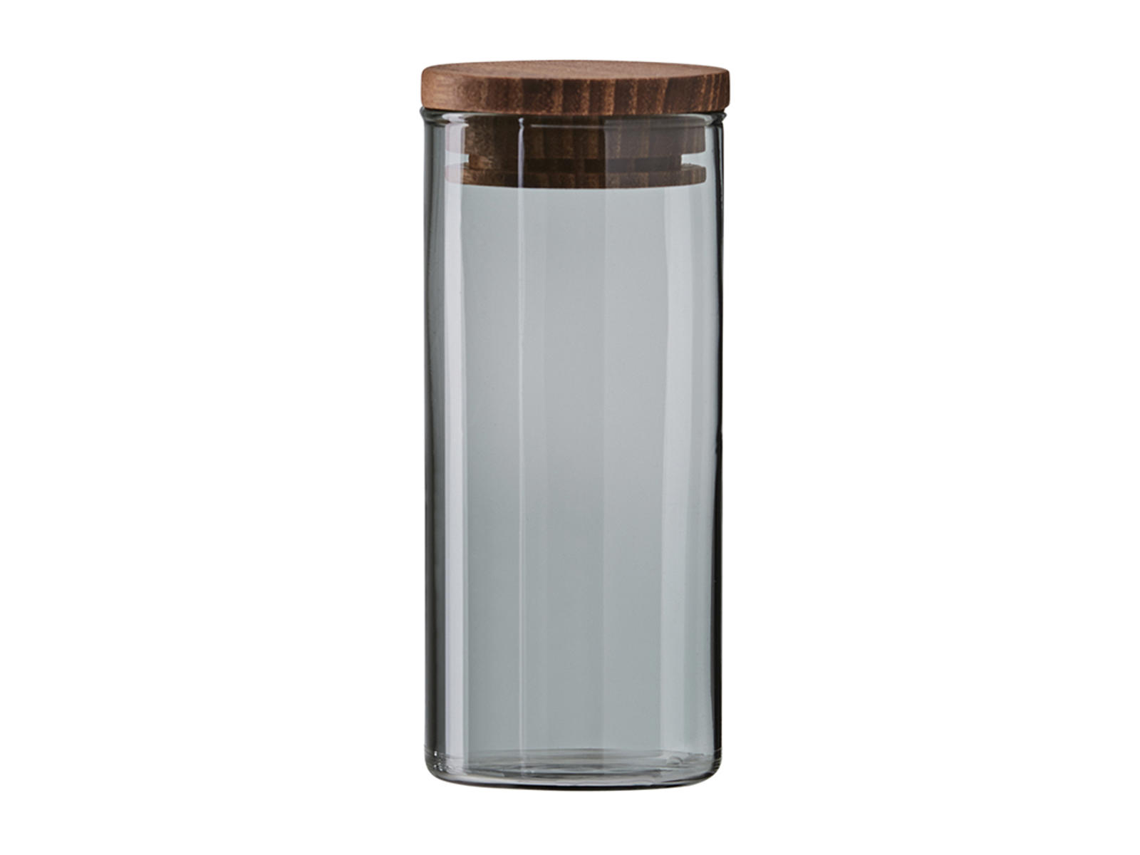 The smoky glass provides a sophisticated look while allowing you to see the contents, so you always know what’s inside the jar. The wooden lid seals tightly, ensuring that the contents stay fresh and protected. Its compact size makes it easy to place on shelves, in cabinets, or on the kitchen counter without taking up unnecessary space.