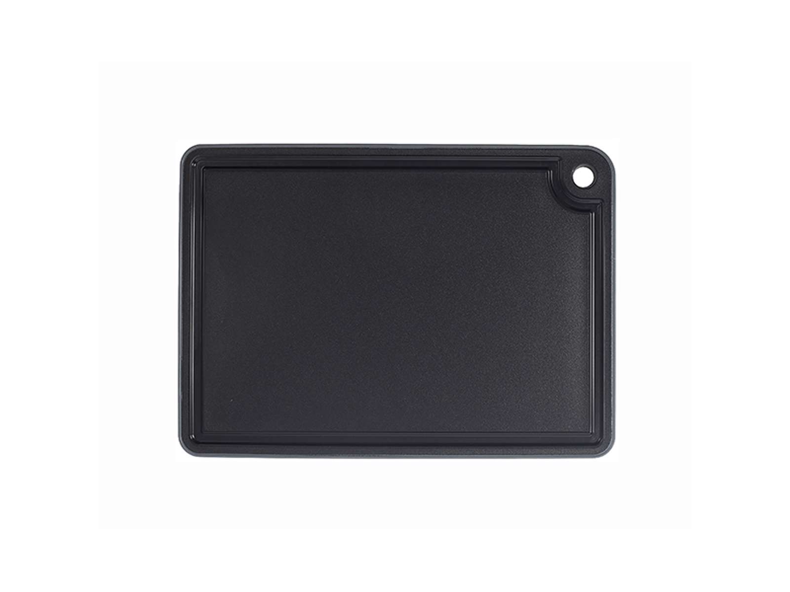 The cutting board is made from durable materials that can withstand daily use in busy kitchens. The black-gray color combination is not only aesthetically pleasing but also practical, as it conceals minor marks and stains. With a thickness of 1 cm, the board is sturdy enough to handle the pressure of cutting, yet light enough to be easy to maneuver. The smooth surface is easy to clean and maintain, extending the board's lifespan and ensuring good kitchen hygiene.