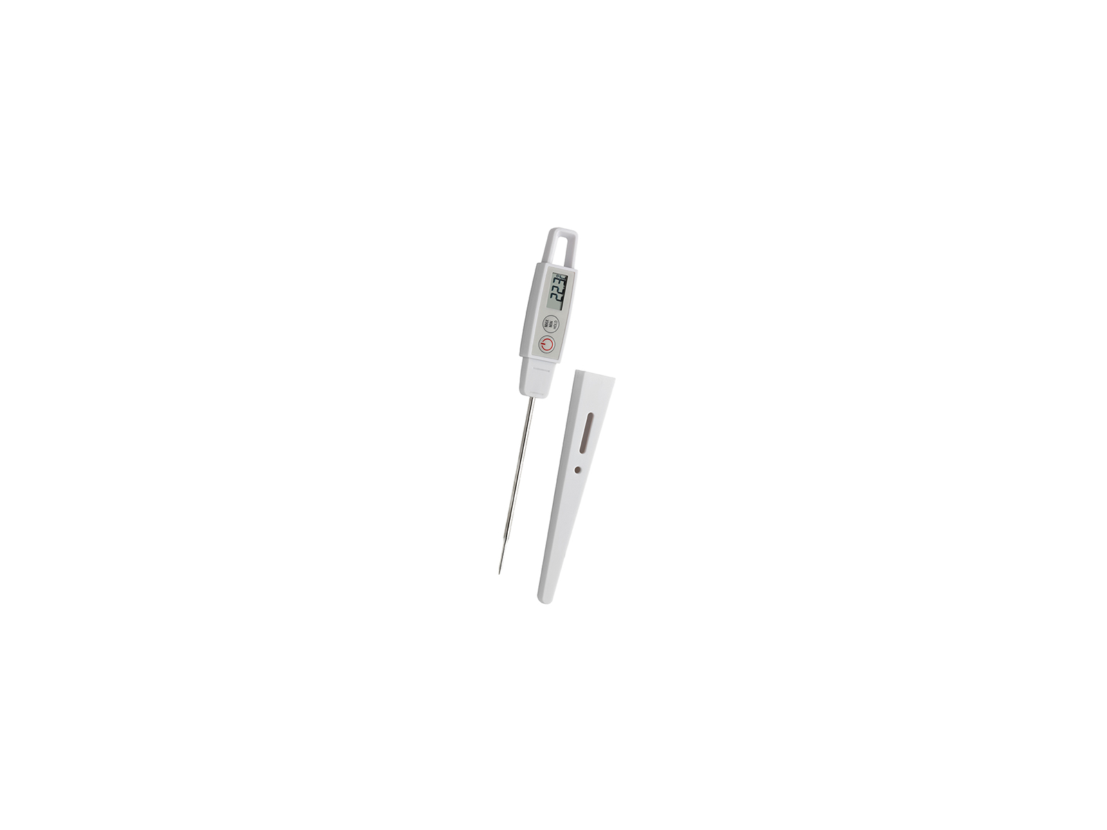 With an IP67 certification, the thermometer is completely waterproof and can be cleaned under running water without worries. Its compact design (218 x 19 x 24 mm) and lightweight of only 32 grams make it easy to carry. The thermometer comes with a practical plastic cover and clip, allowing you to easily store it in your pocket or on your apron. The battery (1 x LR44 1.5V) is included, so you can start using the thermometer right away.