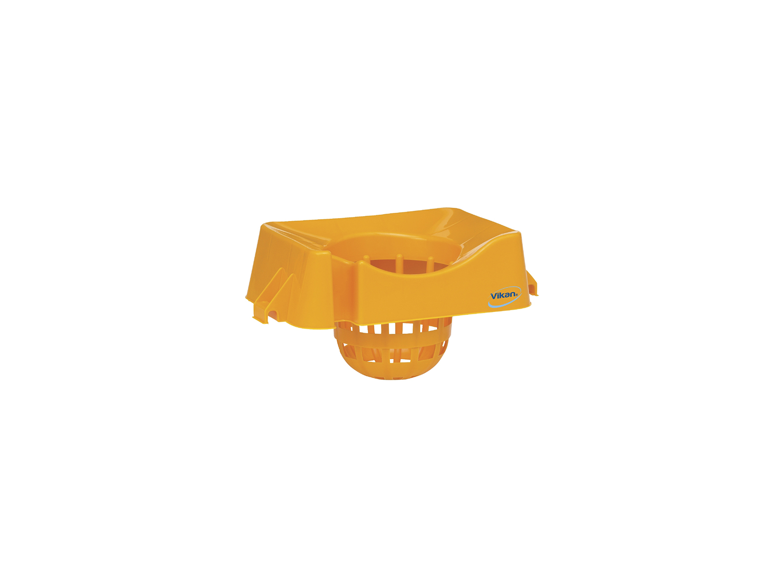 The wringer features an ergonomic handle that provides a firm grip and reduces strain on the hands and wrists during repetitive use. Its yellow color makes it easy to spot in the cleaning cart, contributing to a well-organized work environment. Weighing just 150 grams, the wringer is easy to handle, even during extended cleaning tasks.