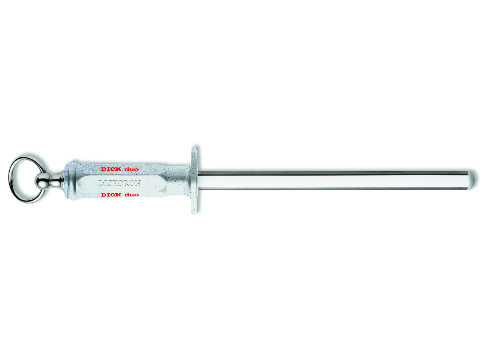 The F. Dick Dickoron Duo sharpening steel combines diamond and ceramic in one professional tool for knife maintenance. With a blade length of 25 cm, it allows you to work with both small and large knives. The square shape ensures a large contact surface, enabling you to keep your knives sharp with minimal effort.