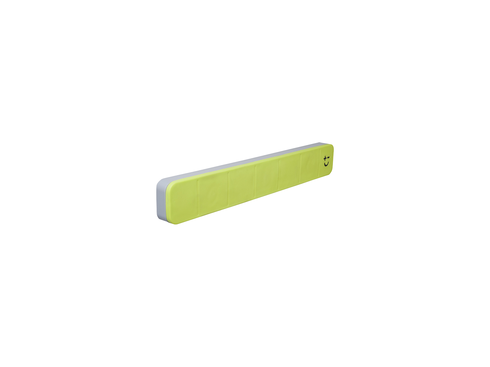 The knife magnet measures 300 mm in length, 45 mm in width, and has a depth of 20 mm. The green silicone surface gives a modern look, while Bisbell's logo discreetly adorns the edge. The magnet is strong enough to securely hold even heavier kitchen knives in place.