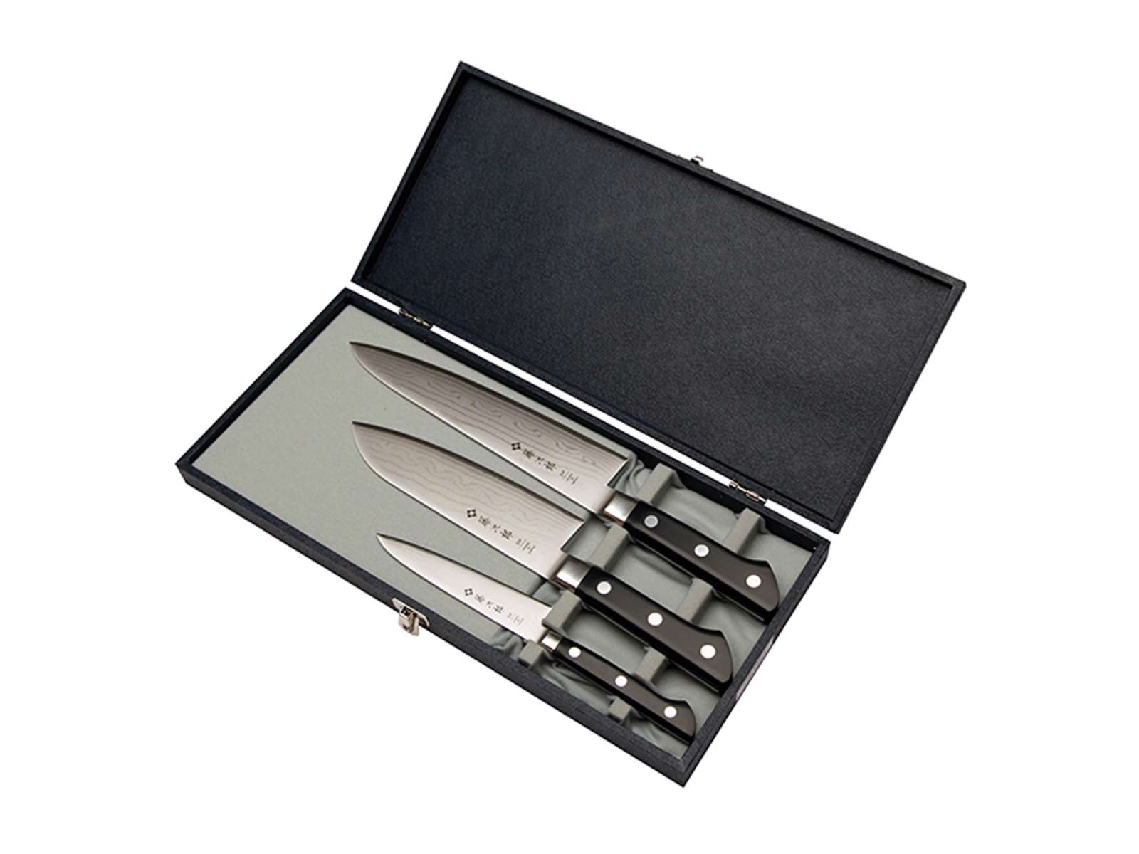 - Three specialized knives made of durable VG10 steel (60 HrC)