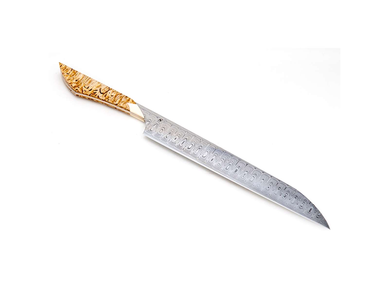 Each Blackbird chef's knife is individually handcrafted, ensuring special attention to detail and finish. The combination of exclusive Damasteel and the elegant ebony handle not only gives the knife a beautiful appearance but also provides perfect balance and weight distribution. This means you can work longer without hand fatigue while achieving more precise cuts in your ingredients.