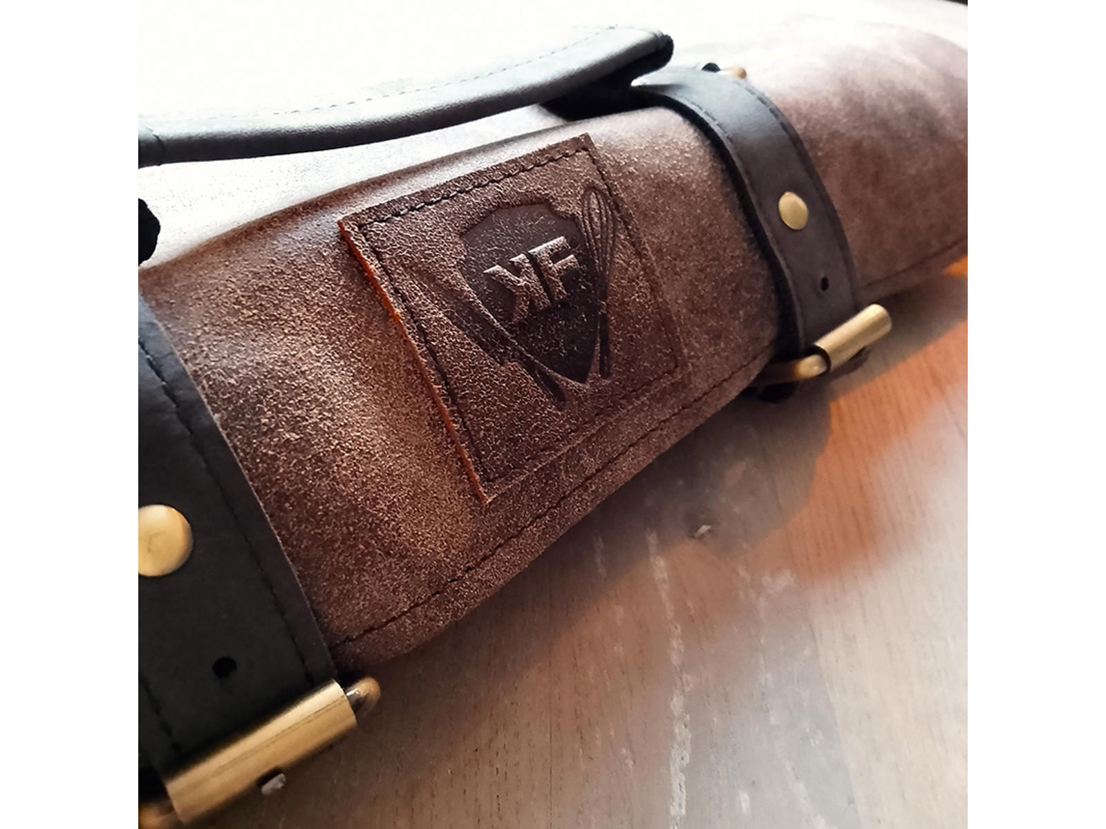 With the adjustable shoulder strap, you can easily transport your knives, even when your hands are full with other equipment. The roll design means that the case takes up minimal space when packed, making it easy to store in kitchen cabinets or on shelves when not in use. The leather material is not only durable but also develops a beautiful patina over time, making each case unique to its owner. The brown color is discreet and professional, perfect for a professional kitchen environment.