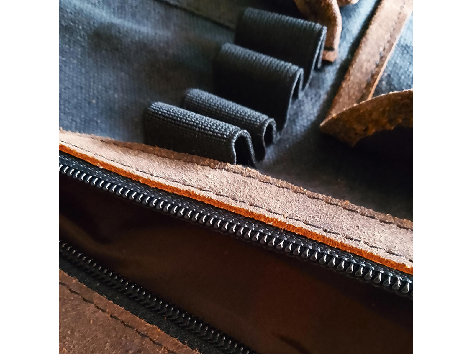 The roll-up case features 5 separate compartments to ensure that your knives do not come into contact with each other during transport, preventing damage to both blades and edges. The durable leather serves as a protective layer against shocks and impacts, while the well-thought-out roll design makes it easy to pack and unpack exactly the tools you need. The additional pocket and elastic holders provide space for smaller tools like spatulas, peelers, or honing steels, keeping everything consolidated in one place.