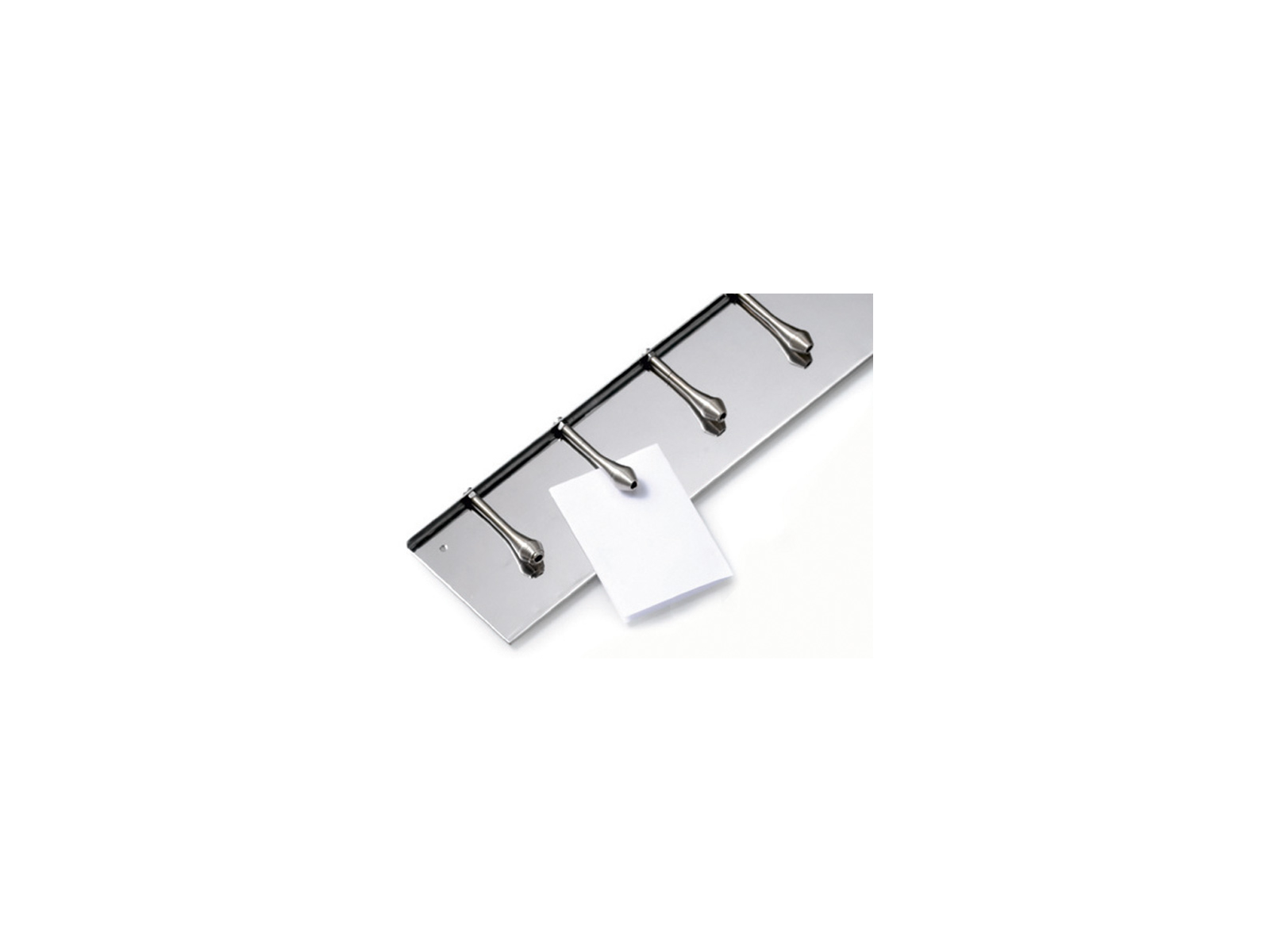 The Louis Tellier order holder, made of stainless steel and featuring 8 practical spring clips, ensures perfect organization in the professional kitchen. With a length of 62.5 cm and a width of 9.5 cm, this holder accommodates up to 8 orders simultaneously, making it ideal for busy restaurant kitchens.