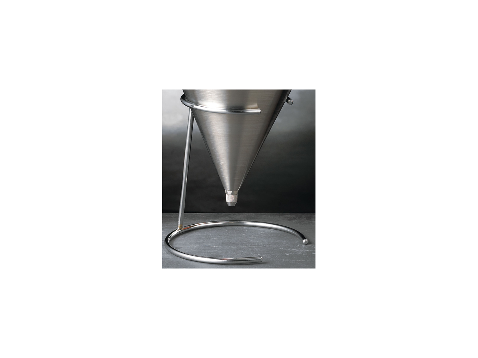 This 21.5 cm high base from Matfer Bourgeat is specifically designed to support and stabilize the portion funnel (258825). Made from durable stainless steel, the base provides the perfect working height, making portioning and dosing more precise and less strenuous for kitchen staff.