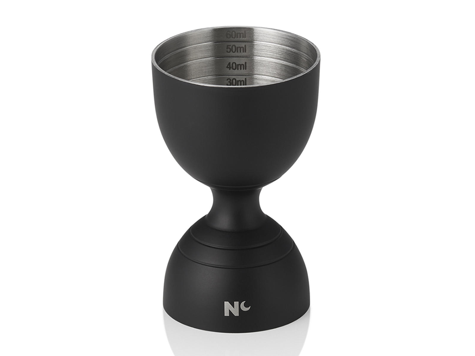 This sleek Nocturn measuring cup in 3/6 cl combines functionality with an exclusive design. Made from high-quality stainless steel (18/8) with an elegant matte black finish, it ensures durability while providing a modern look. With its bell-shaped edge and compact size of 50x50x80 mm, the measuring cup fits perfectly in your hand.