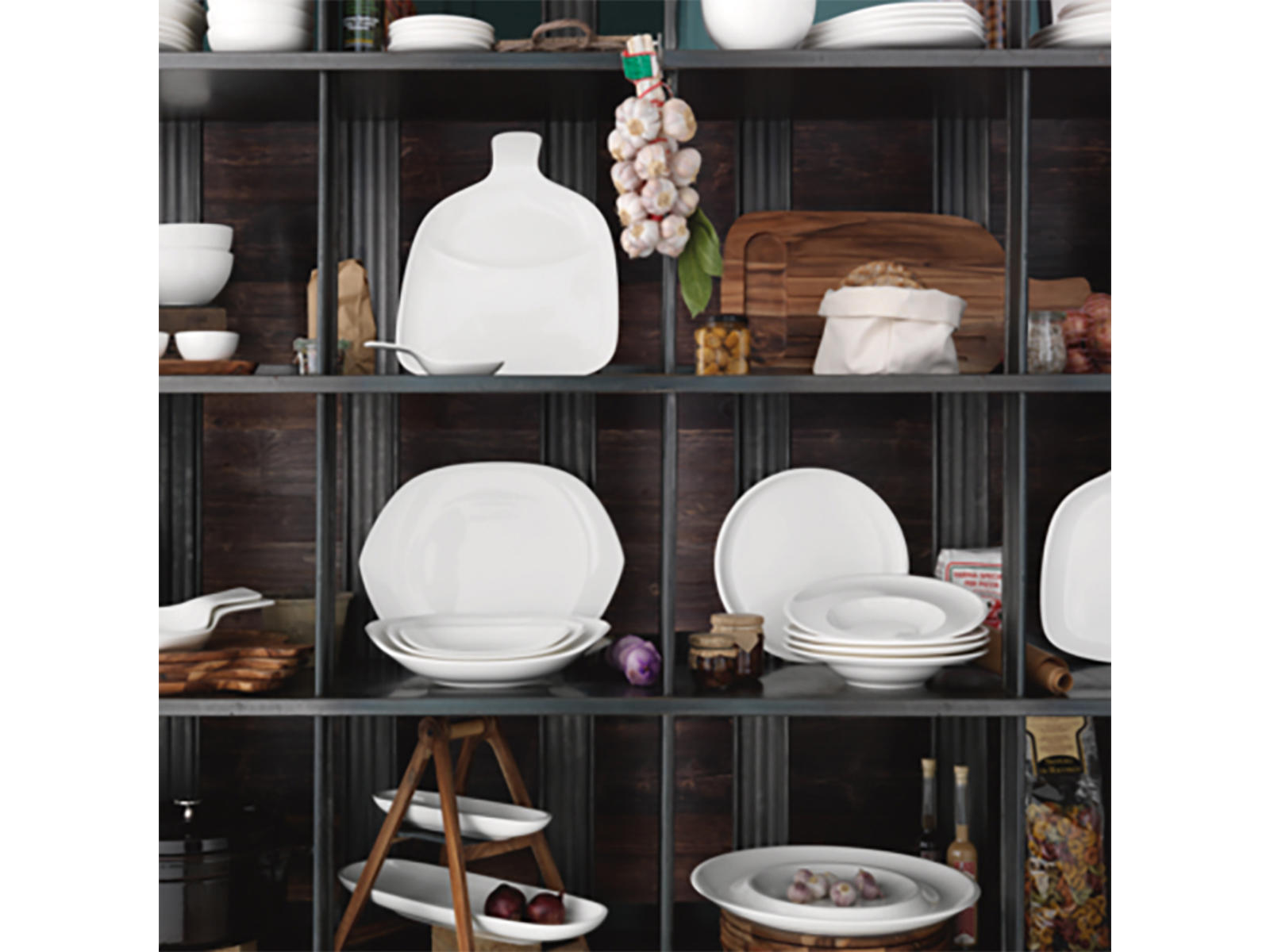 The bowl's premium porcelain ensures durability for everyday use and maintains its white sheen even after many years. The characteristic flat edges give the bowl a distinctive look that sets it apart from ordinary serving bowls. This combination of quality material and thoughtful design means that the bowl is not only functional but also adds a sleek element to your serving.