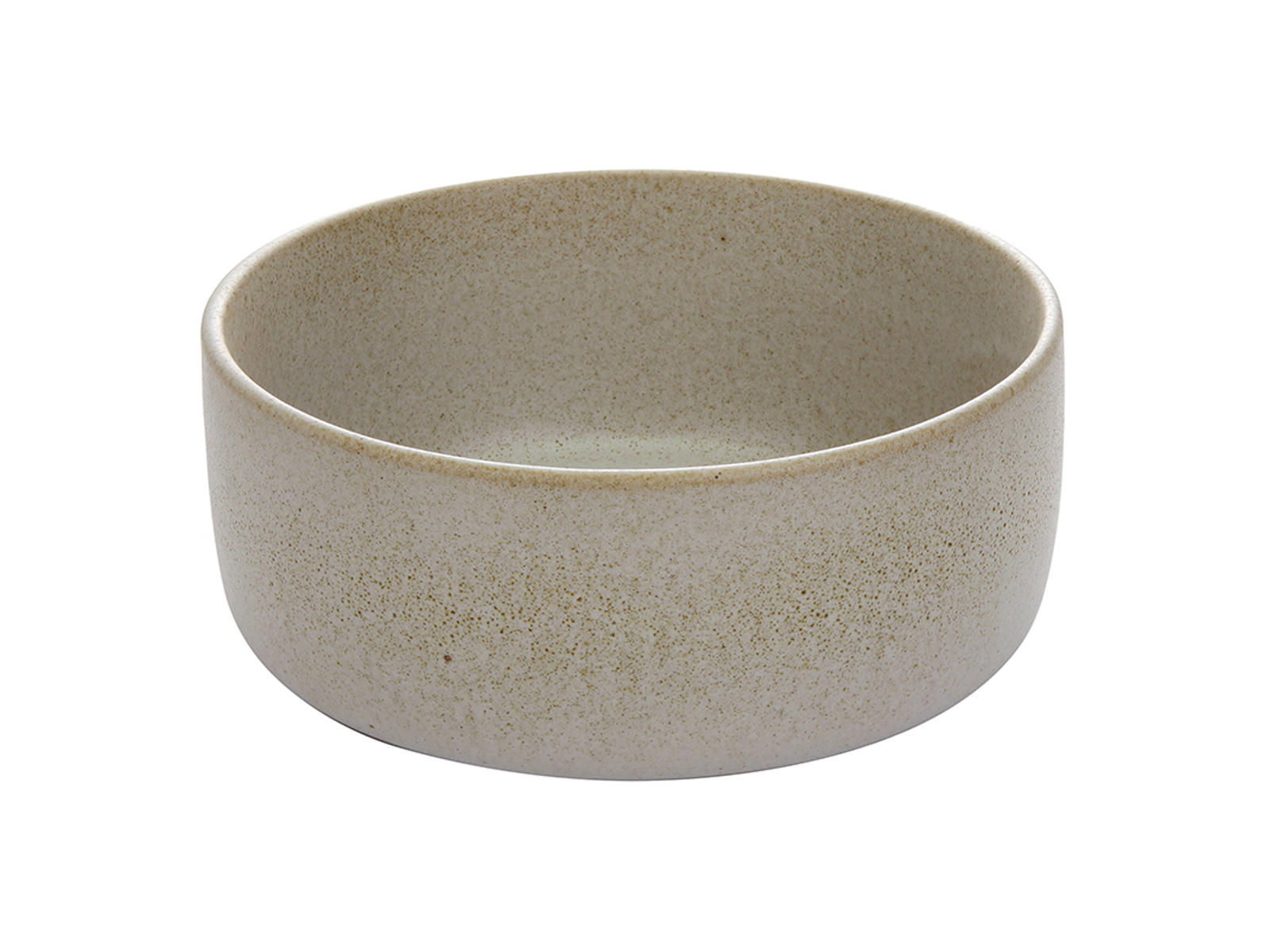 This Aida RAW bowl in Sandy Beige measures 19.5 cm in diameter and 8 cm in height. Made from double-fired stoneware at over 1200 degrees, the bowl features a distinctive expression with its matte surface and reactive glaze, ensuring that each piece has its own unique character. The soft, natural beige color gives the bowl a timeless look that fits seamlessly into both modern and rustic homes.