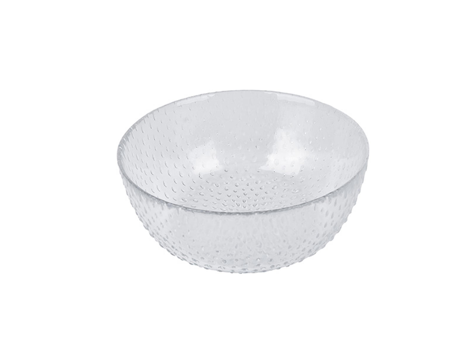 The bowl is part of the RAW Glass Beads collection, which merges functionality with artistic expression. The clear glass gives the bowl a light and elegant appearance, while its solid construction ensures durability for everyday use. Weighing 396 grams, the bowl sits steadily on the table, even when filled with food. The transparent finish also makes it easy to combine with other colors and materials in your existing table setting.